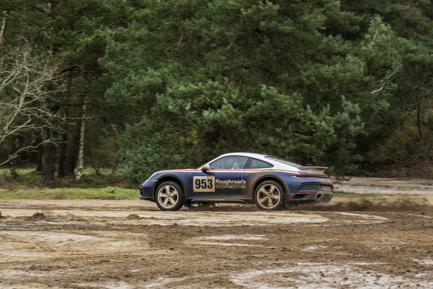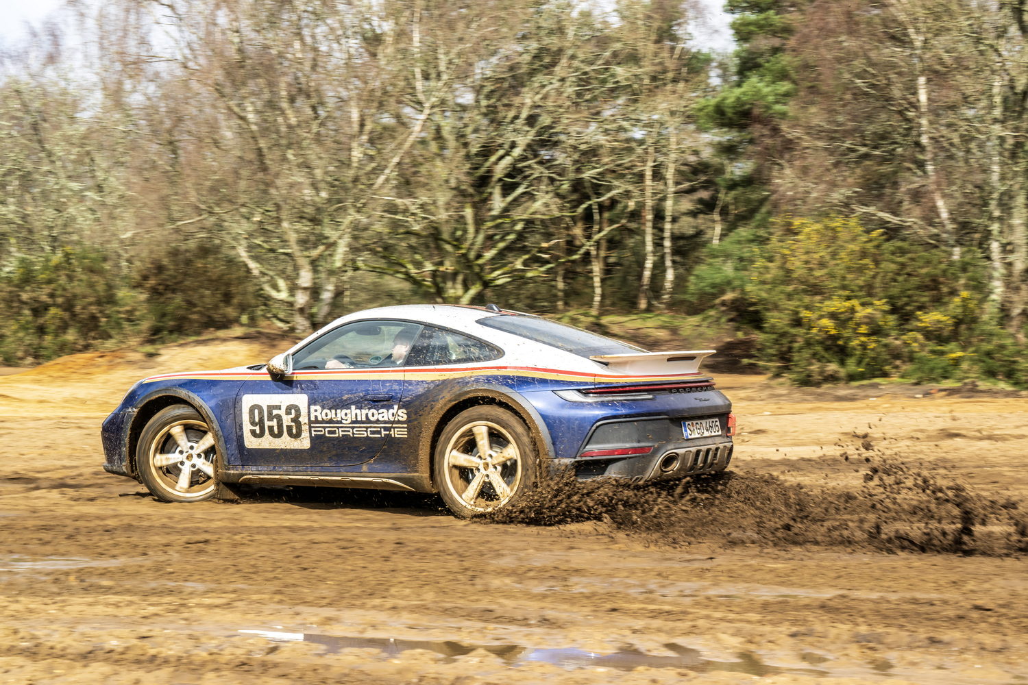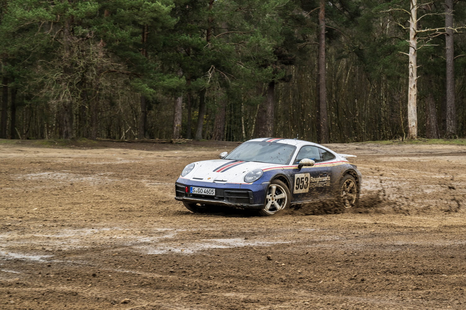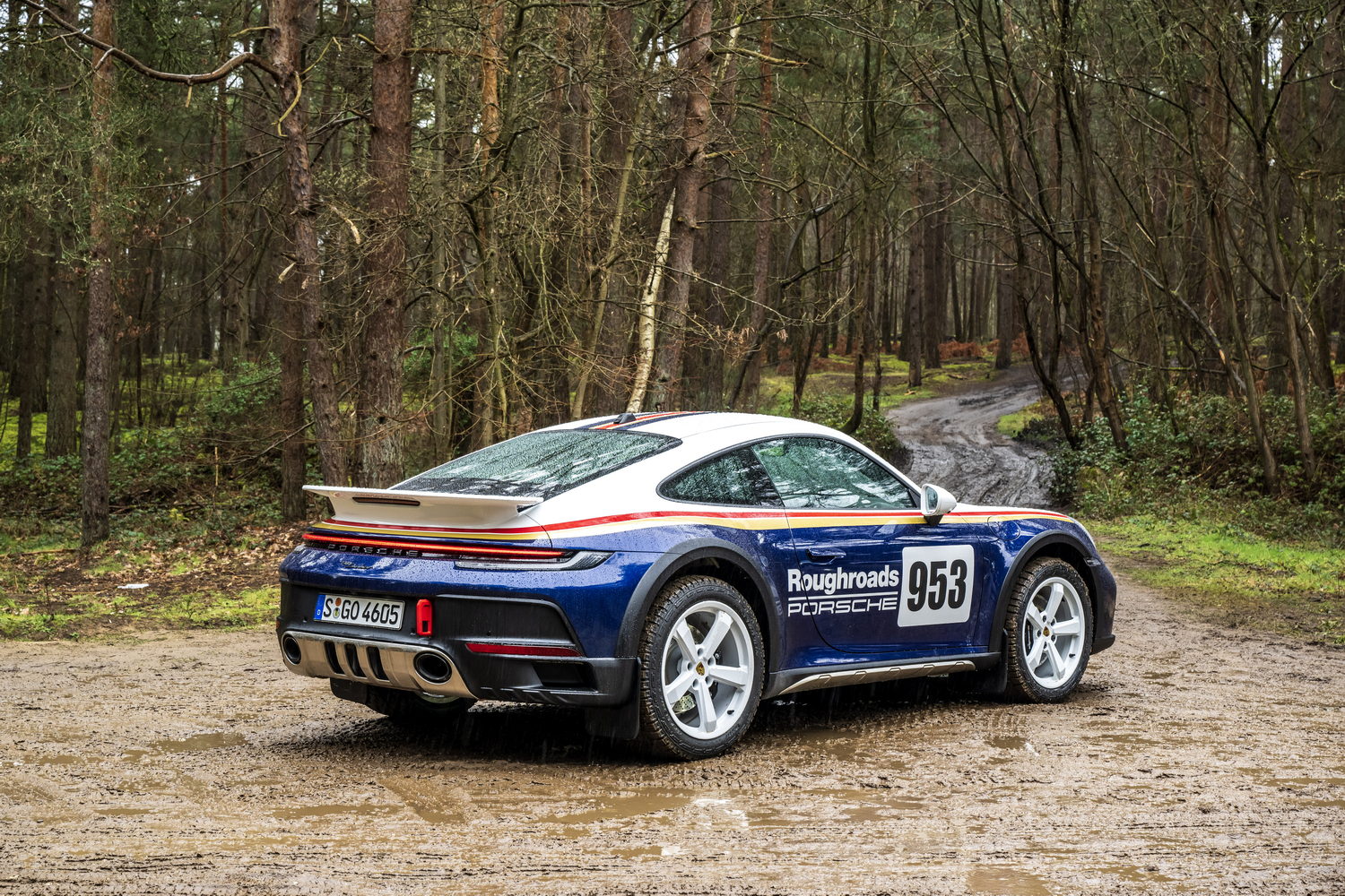 You pay considerably more to have the 'Roughroads' livery applied to your already quite expensive 911 Dakar because it's part of the Rallye Design Package that comes with special white wheels, unique puddle lights and more we'll detail below. There are three other optional liveries referencing the 911's exploits in the East Africa Rally that cost significantly less as they're just wraps.