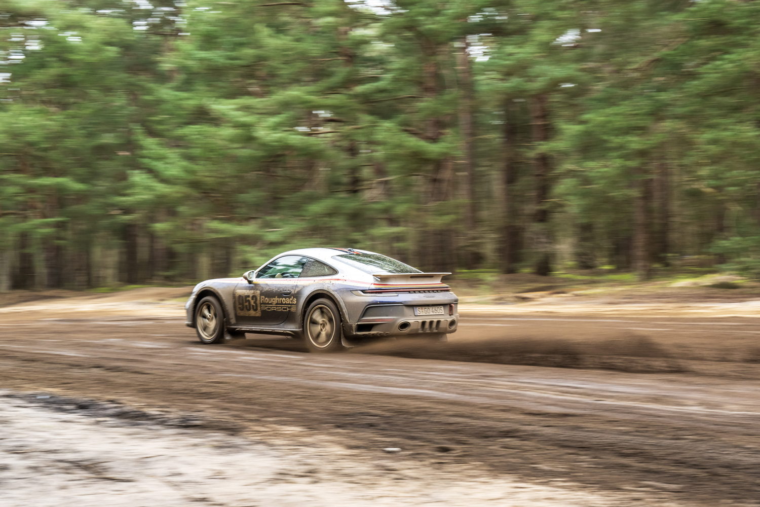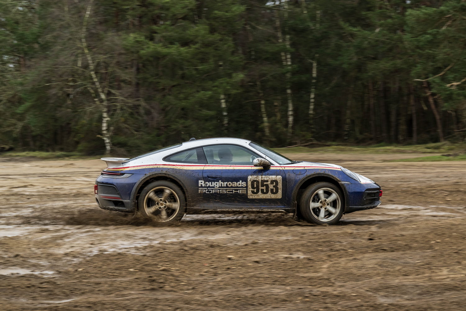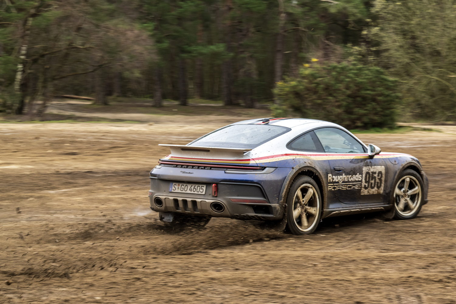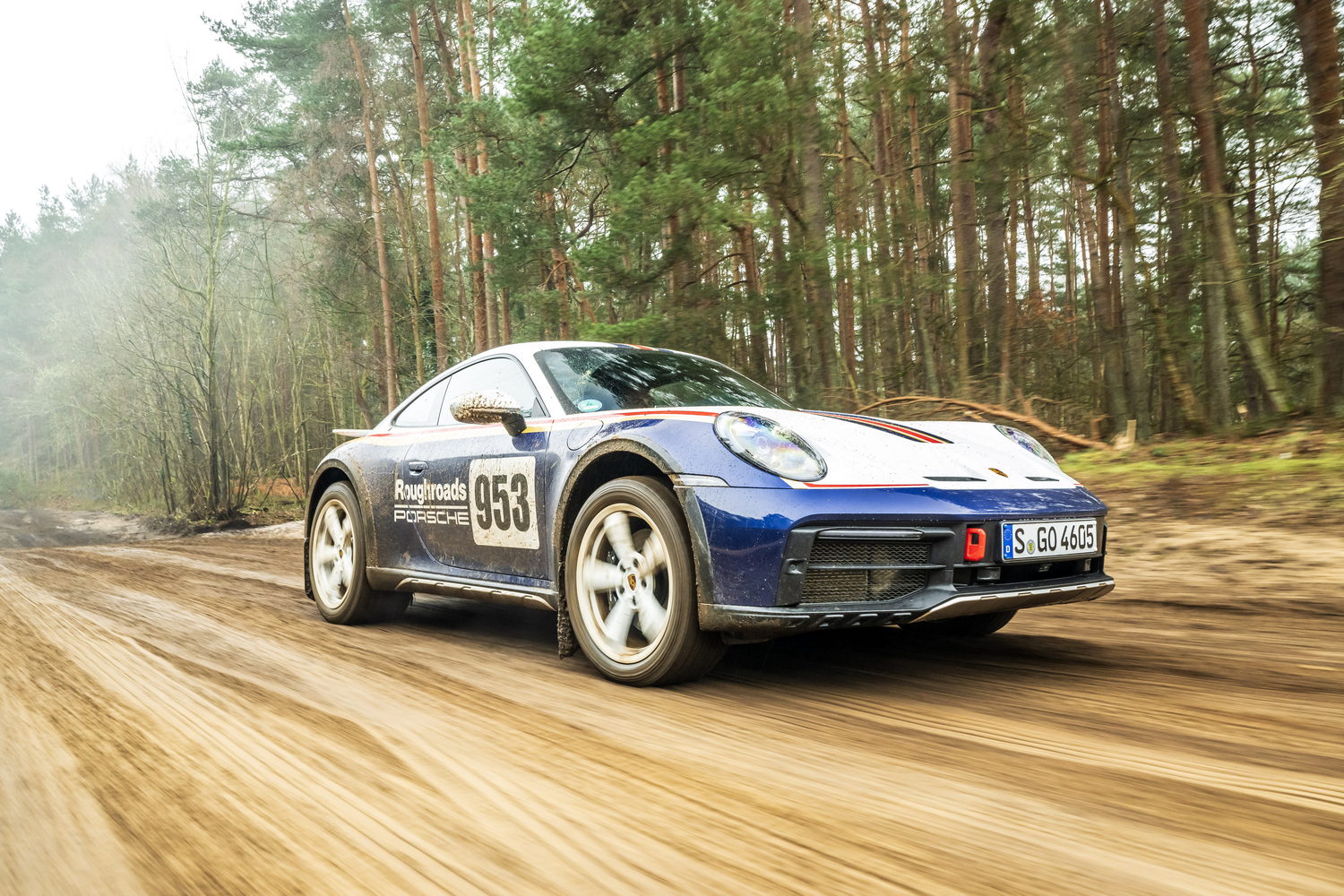 You pay considerably more to have the 'Roughroads' livery applied to your already quite expensive 911 Dakar because it's part of the Rallye Design Package that comes with special white wheels, unique puddle lights and more we'll detail below. There are three other optional liveries referencing the 911's exploits in the East Africa Rally that cost significantly less as they're just wraps.