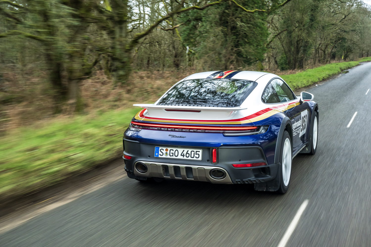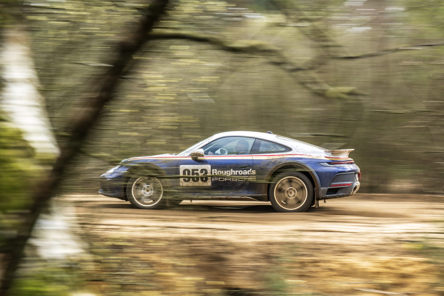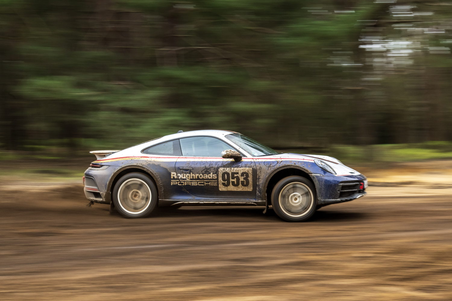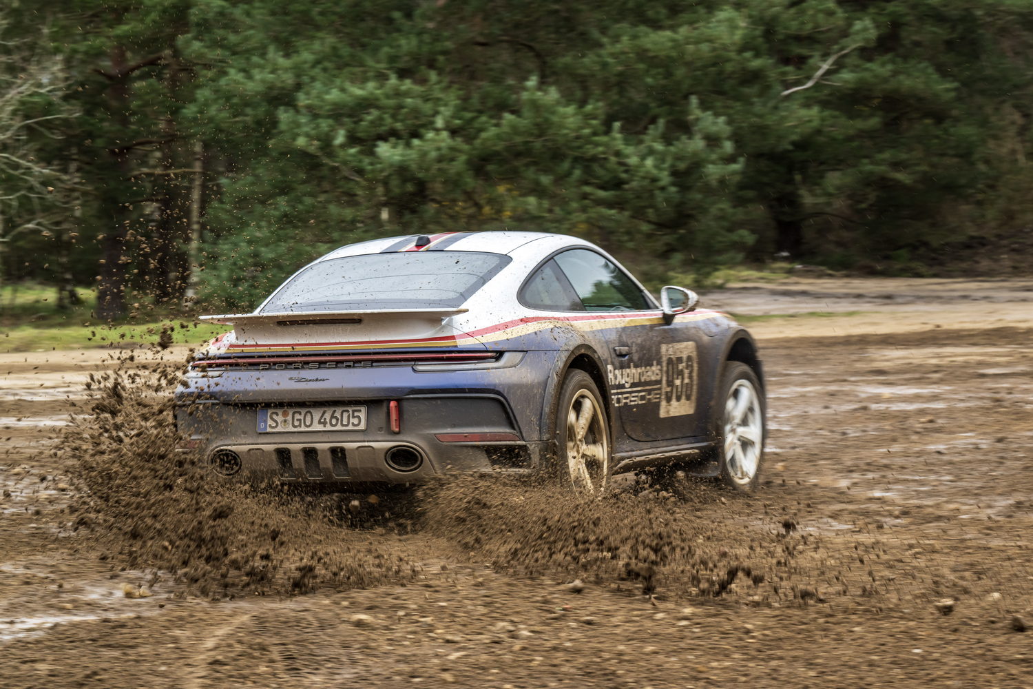 You pay considerably more to have the 'Roughroads' livery applied to your already quite expensive 911 Dakar because it's part of the Rallye Design Package that comes with special white wheels, unique puddle lights and more we'll detail below. There are three other optional liveries referencing the 911's exploits in the East Africa Rally that cost significantly less as they're just wraps.