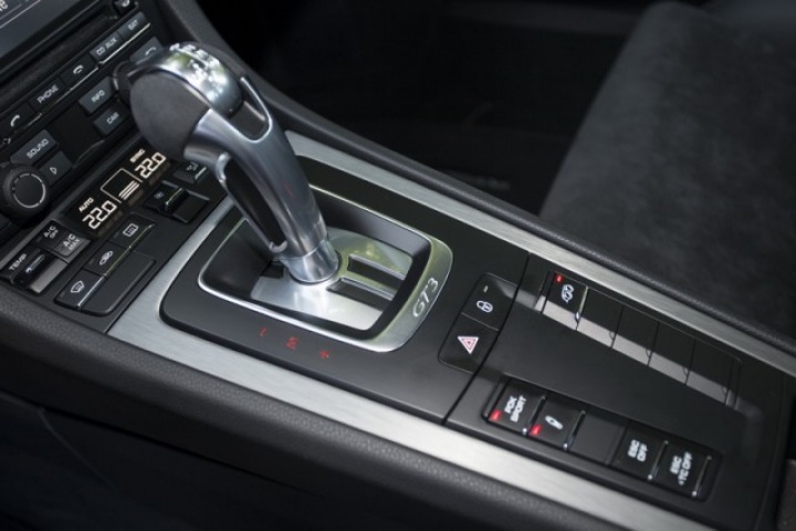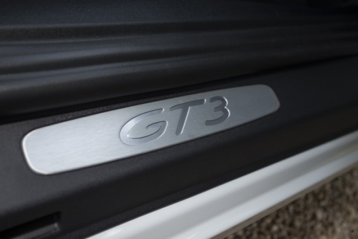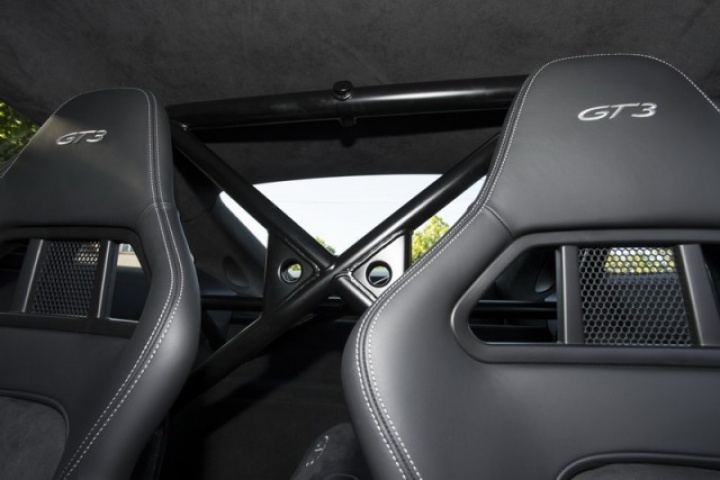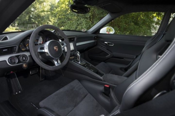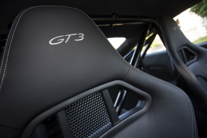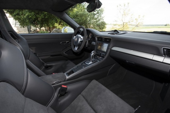 Inside it's less austere than previous GT3s, thanks largely to the finer quality materials evident on the base 991 car in the first place. There are no rear seats as ever, the sports bucket seats up front holding you tightly, while Alcantara covers all the contact surfaces on the steering wheel and gear knob - albeit topping a PDK rather than manual transmission shifter.