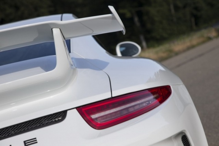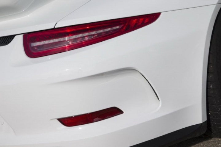 Big wing, ramp-scraping splitter, gaping air intakes up front and twin exhausts sitting centrally under the back: the new 991 GT3 follows the GT3 styling brief to the letter. It looks sensational, taking the 991's shape to the point where it looks like it's just driven straight off the racetrack and onto the public road. Everything's functional too; the larger 20-inch wheels help aid brake cooling and the aero kit adds more than 120kg of downforce at the GT3's maximum speed.