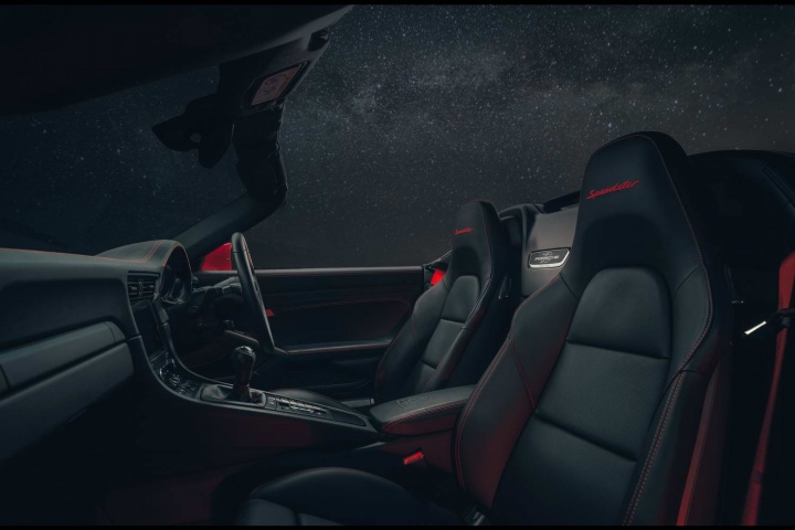 Along with that stellar 4.0-litre engine - which is one of the greatest normally aspirated combustion mills ever committed to a foundry, we might add - Porsche has made sure the Speedster has the chassis chutzpah to go with its undoubted performance. All of the following are fitted as standard and, in the case of the brakes, the four-wheel steering and the suspension, the Speedster gets its own specific states of tune or hardware to best suit its character: so there's Porsche Active Suspension Management (PASM) with a sports tune and a 25mm drop; as well as Porsche Torque Vectoring with a mechanical limited-slip differential; a tweaked version of Porsche Stability Management (PSM); Porsche Ceramic Composite Brakes (PCCB) with their own, bespoke compound of pads; Rear-Axle Steering; Porsche Active Drivetrain Mounts (PADM); and grippy Michelin Pilot Sport Cup 2 tyres wrapping those glorious 20-inch wheels.