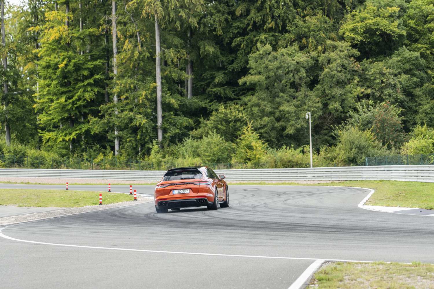 Gracious, this is speed. We tried the Turbo S as a Sport Turismo on the road and also as a regular Panamera on the undulating, formidable and downright demented Bilster Berg track to the east of Paderborn in Germany, but in either environment the way this 2,135kg Panamera piles on the pace is just preposterous. It goes breezily past 220km/h like many other cars tick off 100km/h and, while there's maybe a hint of lag to the delivery if you catch it out in Normal mode (and we mean the merest 'hint'), once the all-wheel-drive powertrain and the eight-speed PDK are hooked up to the wheels, the horizon is suddenly well within your reach. It goes, the Turbo S. It goes exactly as thunderously, outrageously quickly as you'd expect looking at a set of stats that read 0-100km/h in 3.1 seconds, 0-160km/h in 7.2 seconds, 0-200km/h in 11.2 seconds and a top speed of 315km/h. We'll once more point out here that this is an estate, not some low-slung, aerodynamic, mid-engined supercar.
