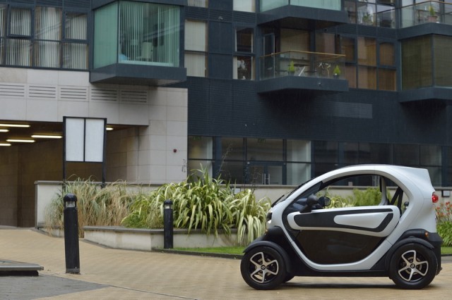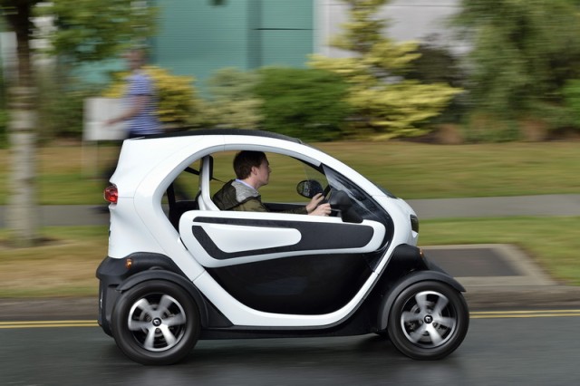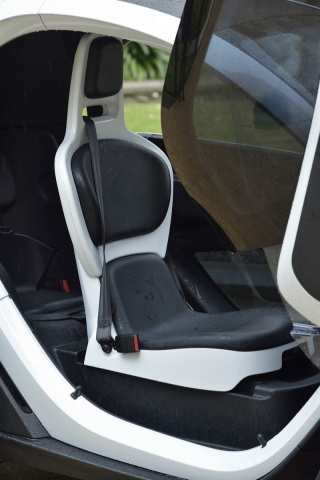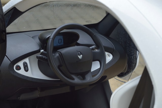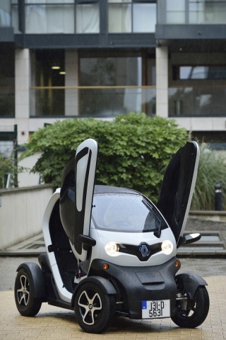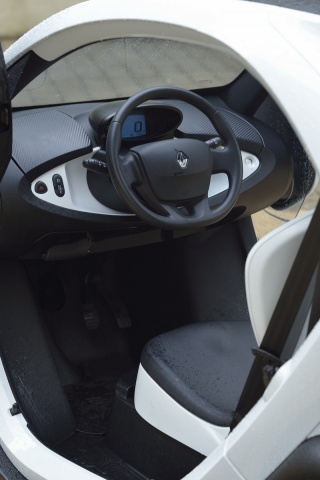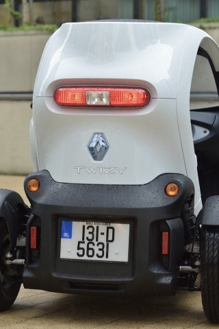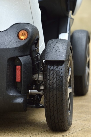 With looks that would not seem out of place on a sci-fi movie set you would hardly expect the Twizy to be powered by something as primitive as an internal combustion engine, and you'd be right. Tucked away below the seat line is an electric motor that delivers 17hp and 57Nm of torque. May not sound like a lot but then the whole 'car' does only weigh 450kg so it does happily zip along. You are unlikely to be upsetting any Go Safe speed detectors (possibly a good thing), but around town the delivery of maximum torque from standstill is ideal, it allowing you to nip in and out of traffic and with so little weight to haul around the Twizy is surprisingly nimble; you will not scythe through corners the way you would on a bike or scooter, but neither will you feel out of place in the handling department. A tight turning circle also means that the Twizy will also be able to negotiate tight city streets better than a car and dive for that last available parking spot much easier.