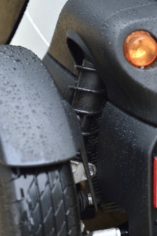 Top speed is rated at 80km/h so it will fare no worse on a motorway than a scooter either though such high-speed driving will quickly eat away at the electric charge which, around town, is said to deliver a 100km range from a single charge. Some of this range comes from the regenerative braking that will trickle charge the lithium-ion batteries while decelerating or braking. It also only takes 3 to 3.5 hours to charge from a three-pin socket, though with most of the on-street electric charging bays fitted with fin pins it does somewhat restrict where you can park and charge it.