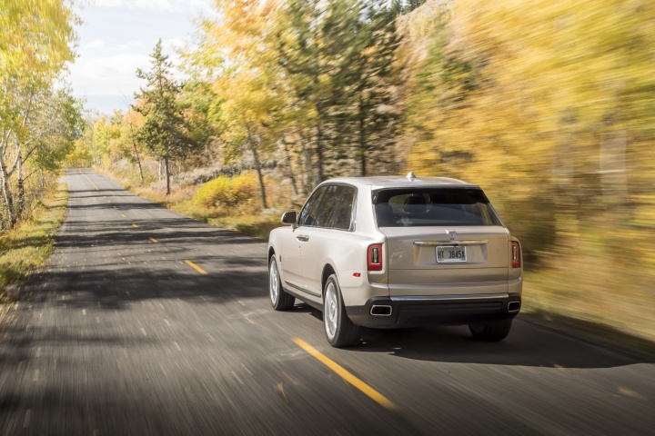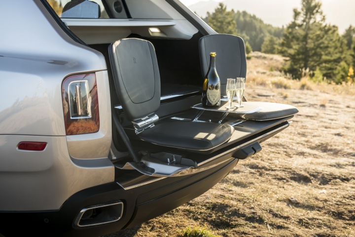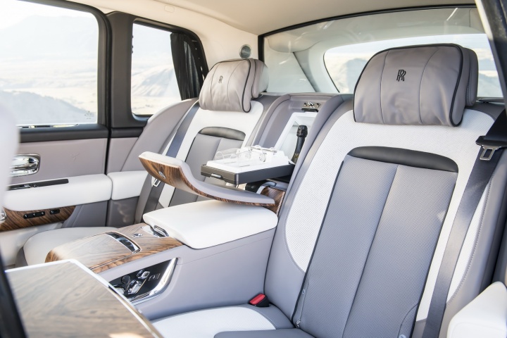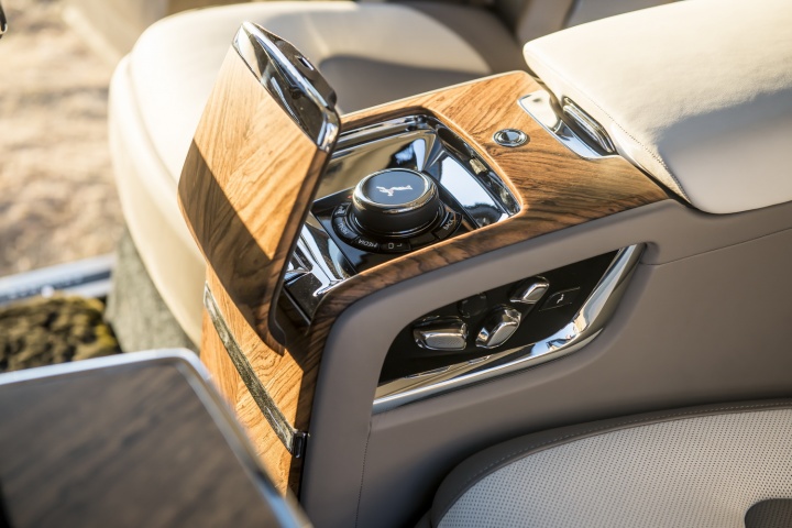 Rear-seat configurations vary from a pair of super-luxury rear chairs that don't fold, or a bench seat layout that allows for five people onboard. This latter set-up features electrically folding seats, which balletically collapse down and then move their headrests to prevent the Rolls-Royce logo on their faces from imprinting the seat-base leather, and the legroom/comfort in either configuration is beyond reproach. Out back is a big 600-litre boot that is accessed through a two-piece, split tailgate, meaning that Rolls-Royce is having to use unfamiliar words like 'utility' and 'versatility' for the first time to market one of its products.