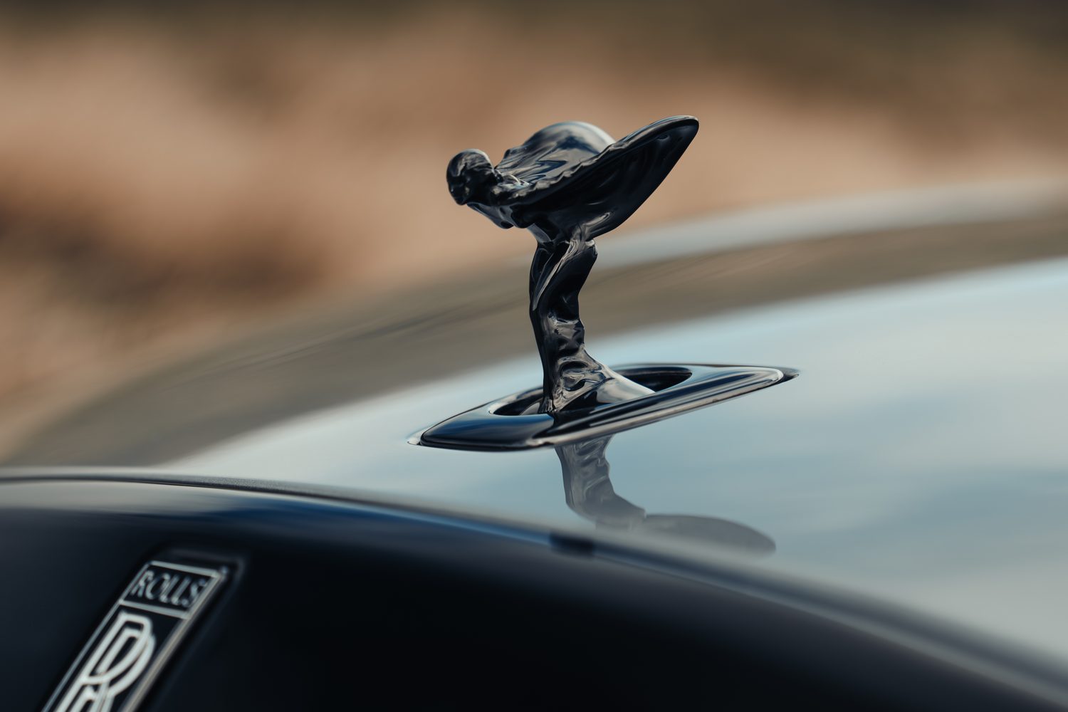 All of the regular Spectre's brightwork is darkened as part of the Black Badge specification, extending to the bumper accents, window surrounds, door handles, the RR badging, the periphery of the 'Pantheon Grille' up front and even the iconic 'Spirit of Ecstasy' bonnet ornament.