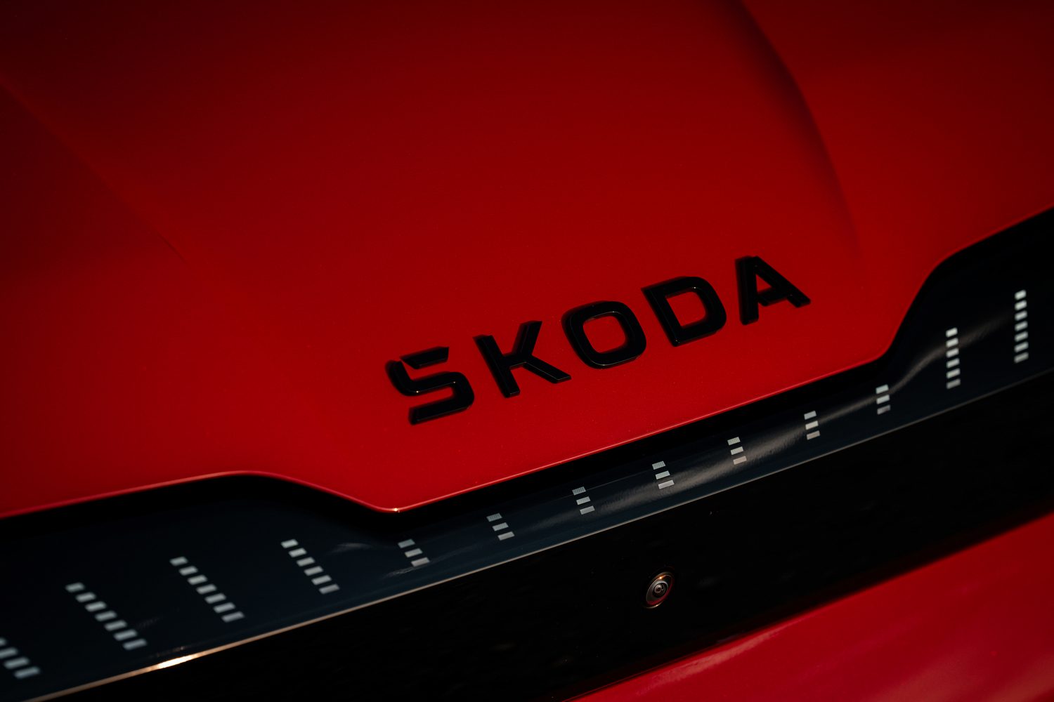 Aside from its emblems changing from the company's old roundel featuring the winged arrow motif to the wordmark that spreads 'Skoda' across the leading edge of the bonnet and boot lid, the new Enyaq RS is most easily identified at the front, where it adopts the 'Tech Deck' face first seen on the smaller Elroq.