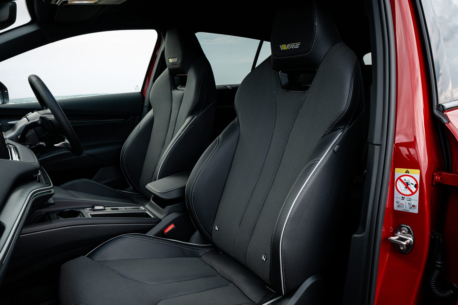The RS model benefits from some sporty bucket seats up front that are good and supportive, and the upholstery mix is either microfibre and synthetic leather or all-black synthetic leather as an option.