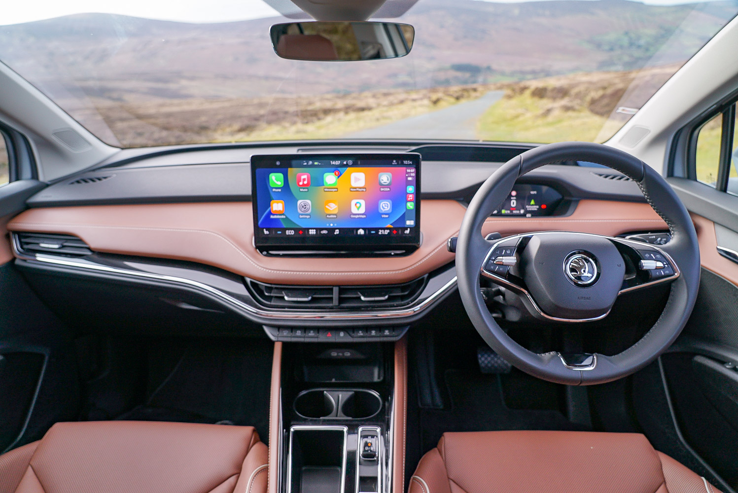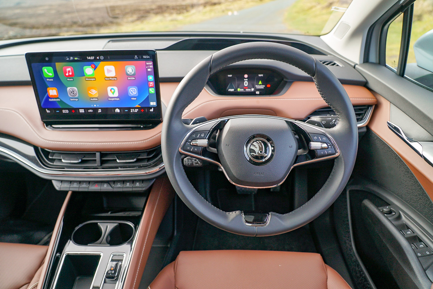 The 13-inch touchscreen must come in for particular praise here. Volkswagen Group's screen software has been rightly criticised, but the Skoda setup is slightly simpler and easier on the brain than that of the ID.4 or the Cupra Born, and the decision to move the air conditioning controls onto the screen is a good one (for a change) as it does away with the fiddly 'slider' temperature controls favoured by VW. There is still a slider volume control, but you'll end up using the simpler physical roller button on the steering wheel instead of that. The optional Canton sound system is also really good and thankfully Skoda offers a proper quartet of electric window switches.