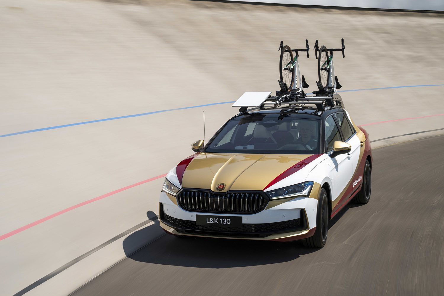 This year's car, however, returns to Skoda's roots in the world of two-wheeled transport. Dubbed the L&K 130, the tenth car in the Azubi scheme is based on the Superb, and it's designed to provide support to cycling teams on long road races, such as the Tour de France or the Giro d'Italia.