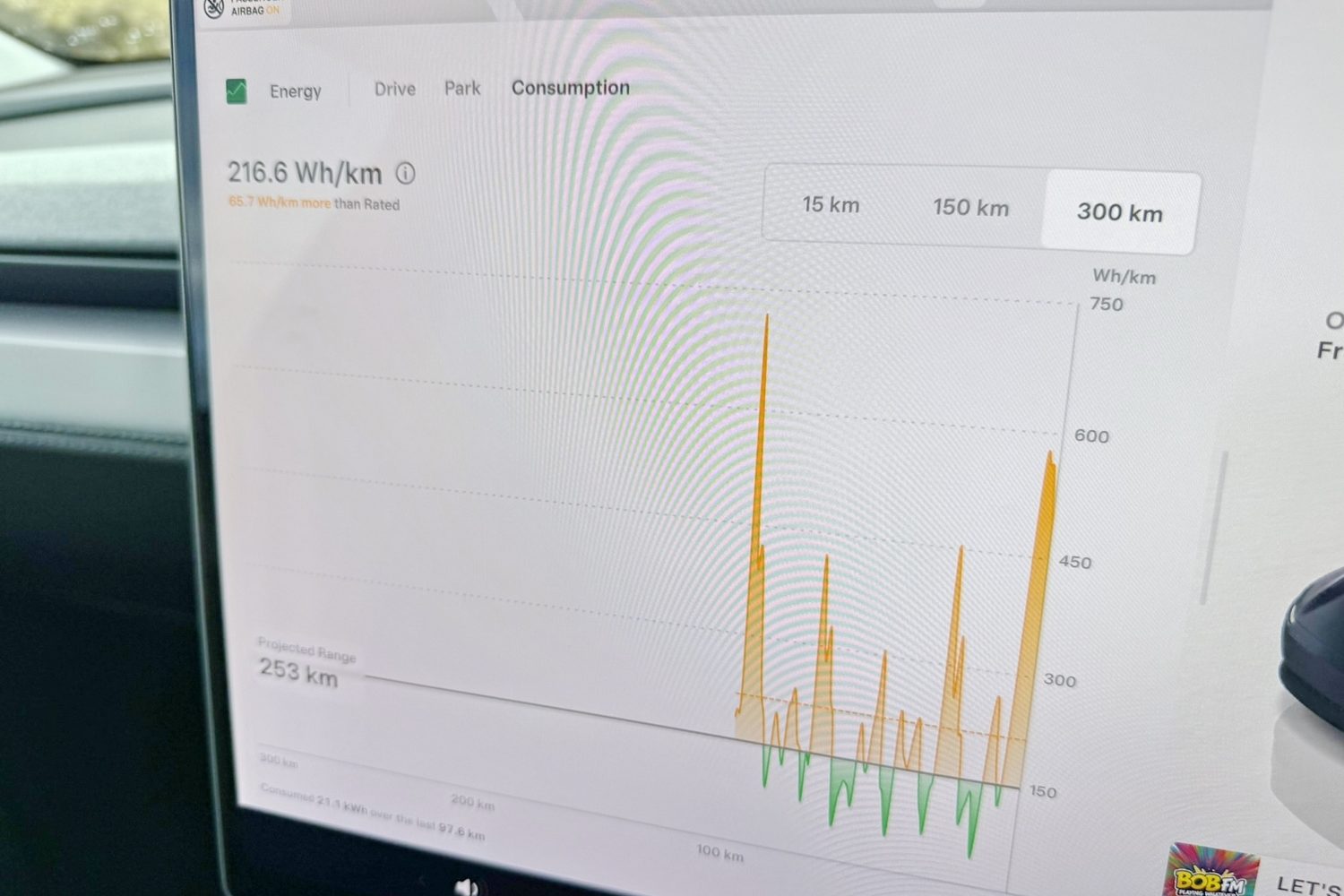 Encouragingly, if you exclude the hilly part of the route, the car managed as low as 16kWh/100km, so it certainly has the potential to be very efficient.