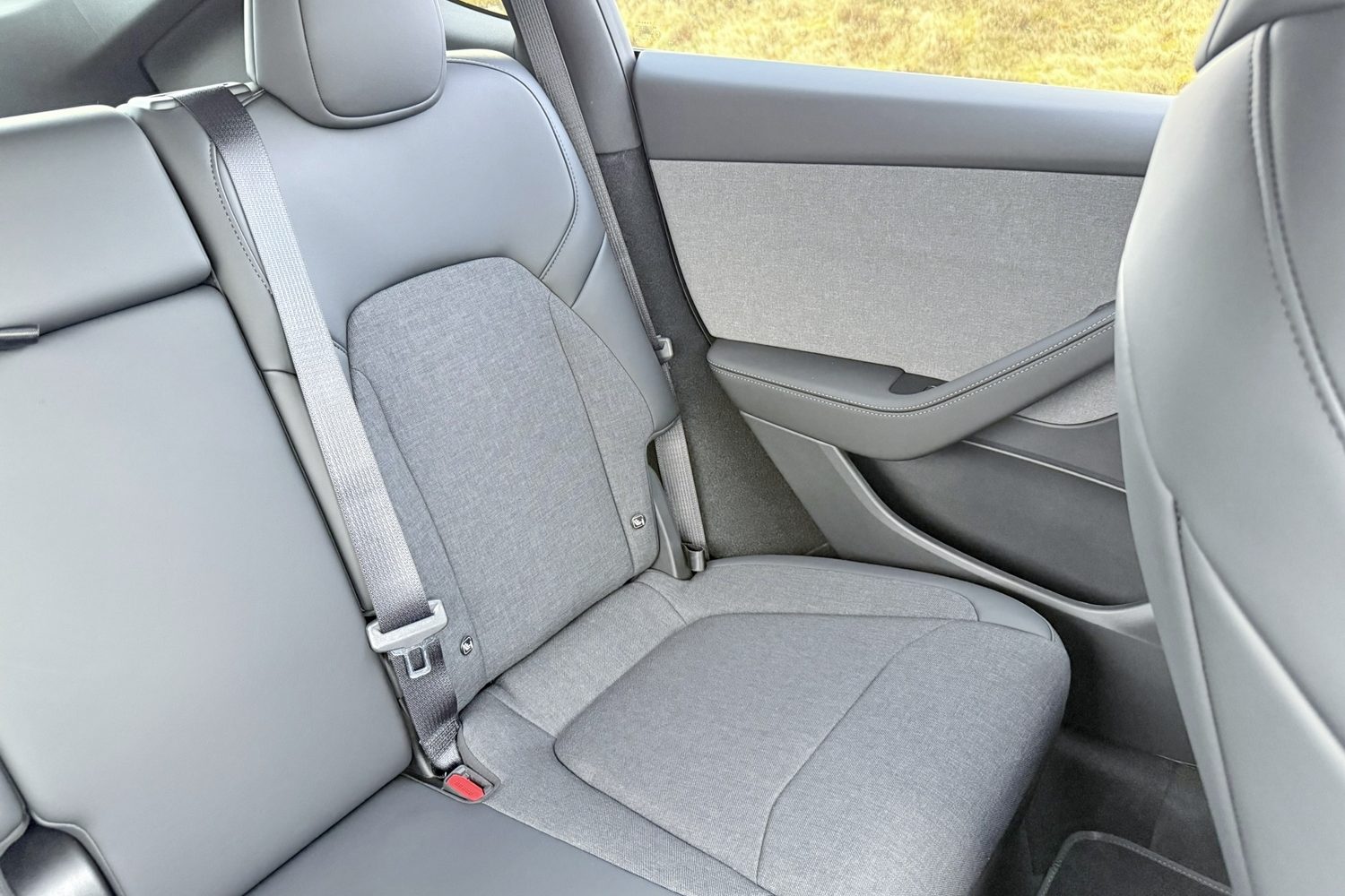 There are ISOFIX mountings in the two outer rear seats, as you'd expect, but none in the front seat of the Model Y. We don't believe you'd fit a booster or any other form of child seat in the middle of the rear seat as the space between the seatbelt buckles is too tight. However, the back doors open wide for easy access, and the large boot can easily swallow the biggest of buggies.