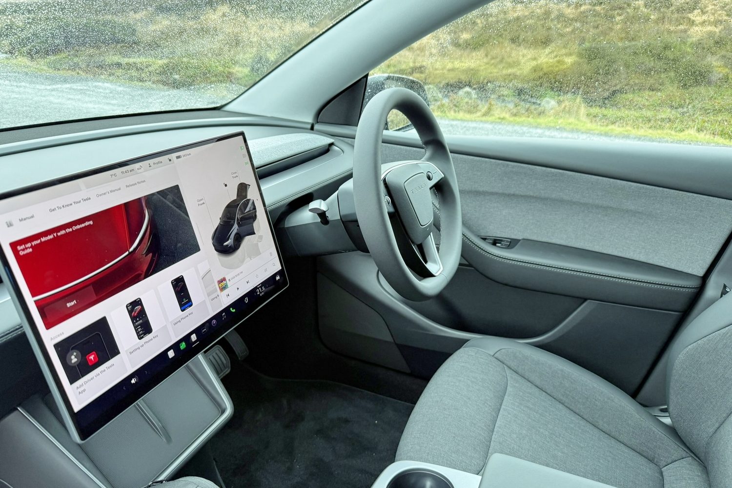 We prefer the simple manual adjustment of the steering wheel position found in the Model Y Standard over the electric adjustment you need to select via the touchscreen in other models. Either way, there's a lot of adjustment in the reach and rake available, which is great.