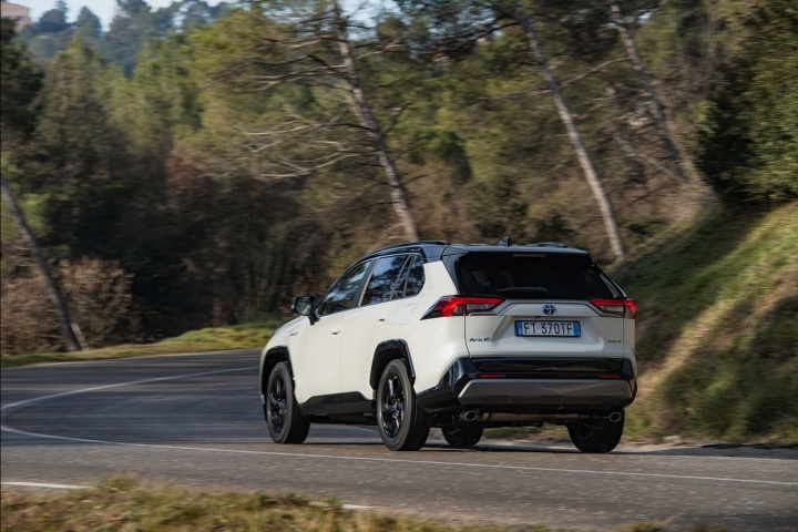 The AWD-i model is far, far better. Instead of a heavy driveshaft and transfer box setup, the AWD-i RAV4 uses a second 40kW electric motor mounted directly to the rear axle. The good news is that opting for AWD doesn't significantly affect your fuel economy or your emissions (in fact, in certain circumstances it can actually be more frugal). The better news is that it transforms the way the RAV4 drives. Because the all-wheel-drive system can divert power to the rear wheels, and because it can also use the brakes to mimic the effect of a limited slip differential, the RAV4 suddenly feels tighter and tauter on the road. It's never as much fun nor as engaging to chuck about as the smaller, lighter C-HR, but in AWD mode it's pretty decent, and retains the main-road refinement of the two-wheel-drive model.