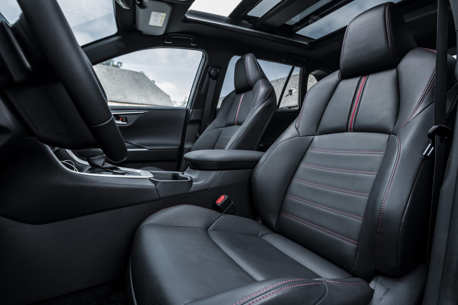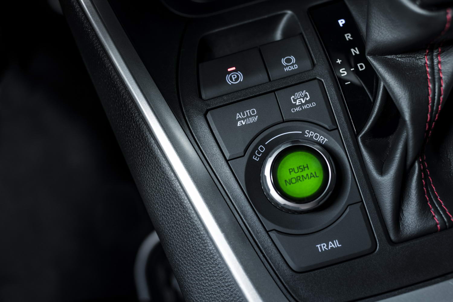 Inside, the RAV4 Plug-In Hybrid has a leather-lined cabin with its own design of seats, but again it will be comfortingly familiar to you if you currently own a Mk5 RAV4. There are extra displays in the part-digital instrument cluster to show the clever energy management that is going on, of course, and slightly more complex switchgear next to the shift lever to control the electric and hybrid systems, and also to cycle through the drive modes of Eco, Normal and Sport (all tastefully rendered in green, blue and red respectively on the button itself as you click through each setting, and then the relevant colour is correspondingly highlighted in the instrument cluster too). But it's largely as you were in terms of appearance and ergonomics. The ample passenger space seems unaffected by addition of the battery pack underneath the vehicle's floor, but the boot does sacrifice a small amount of capacity by the upgrade from hybrid-electric vehicle to plug-in hybrid-electric vehicle - it's down to the tune of 60 litres to 520 litres on this new model.
