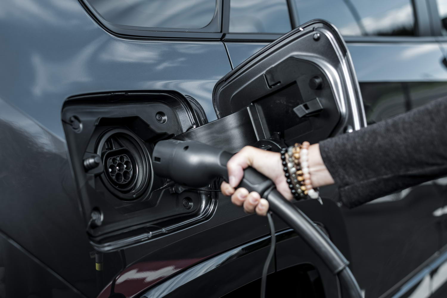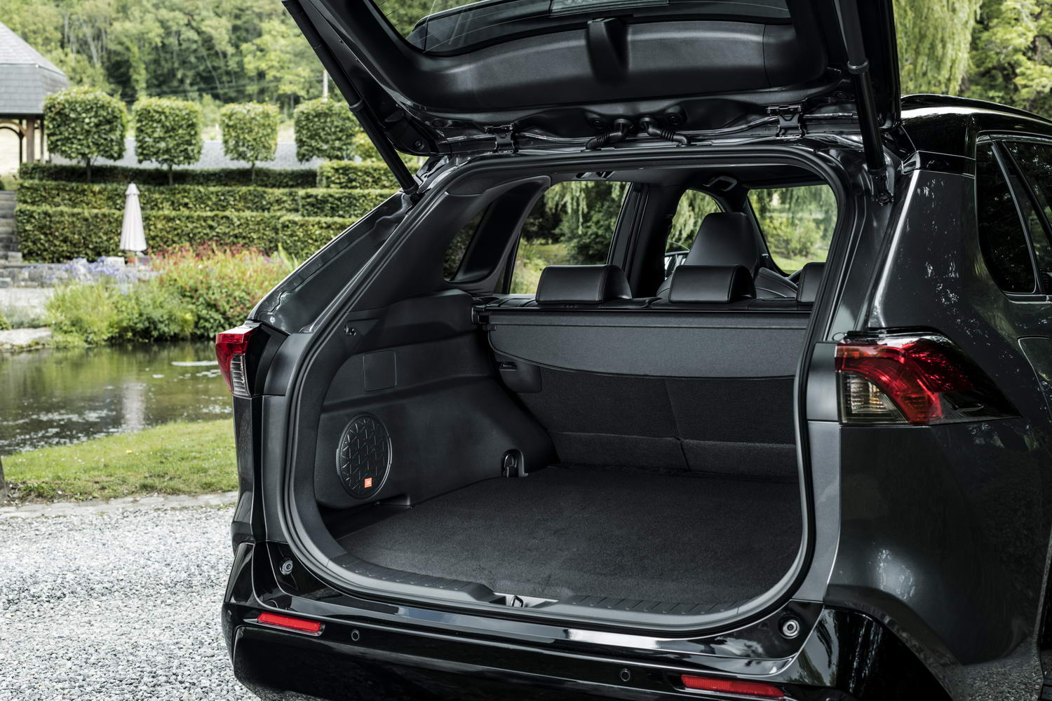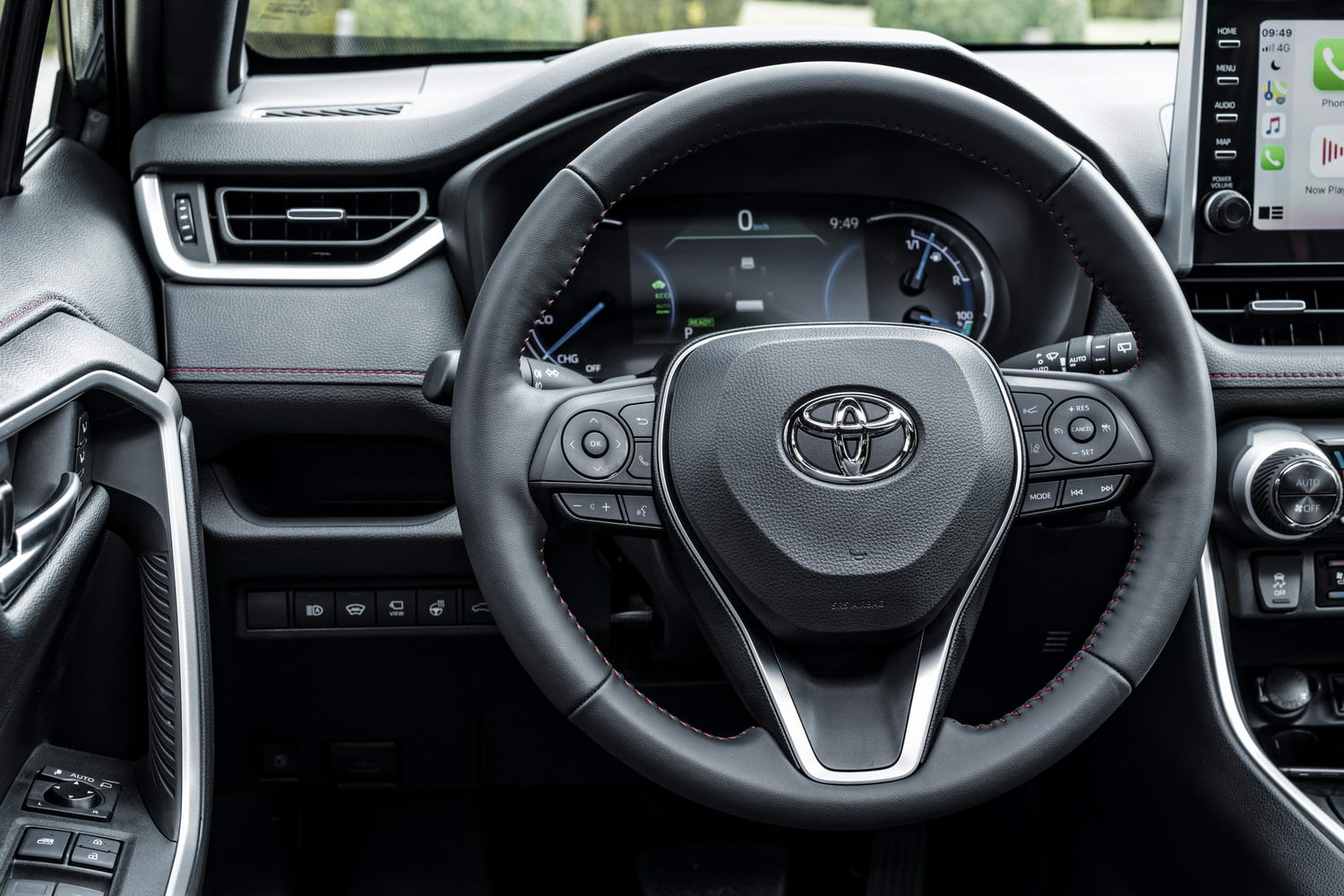 The current fifth-gen Toyota RAV4 is a smashing-looking SUV and having the Plug-In Hybrid version does nothing to change our opinion on that front. The new variant gains some bespoke styling cues to mark it out from its 'regular' hybrid brethren, such as a black mesh radiator grille, a bespoke design of 19-inch alloy wheels, a metallic front-bumper moulding and then 'dark plating' under-runs at both ends of the car, but visually it doesn't scream about the fact it has far greater electric-driving capabilities. The Type 2 charging point, which is the main item of differentiation between this model and the RAV4 Hybrid, is hidden behind what looks like a second fuel-filler flap on the offside-rear of the vehicle. On that note: you get two charging cables as standard, a Mode 2 item for hooking up to a three-pin domestic socket and a Mode 3 version for connecting to a wallbox or public charging point. On the former, it'll take 7.5 hours to charge the RAV4 Plug-In Hybrid up and on the latter, 2.5 hours at 32 amps AC.