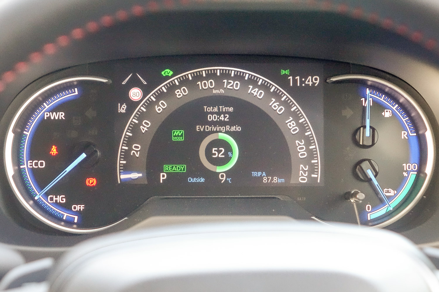During our time with the RAV4 Plug-in Hybrid, we travelled around 44km on electricity alone, some 30km short of the official figure, but this somewhere in line with what you'd expect form a PHEV in everyday driving (in cold conditions I might add, with a stretch of 120km/h motorway, too). Yet once the battery was flat, the RAV4's hybrid system still favoured electricity over petrol. We averaged 6.1 litres/100km over a 160km route, while a similar journey in a Volvo XC60 plug-in, for example saw a return closing in on 10 litres/100km once the battery had been exhausted.