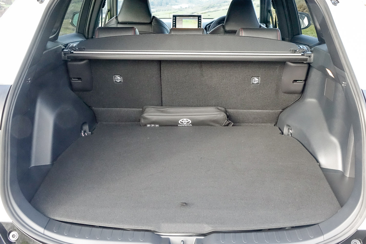 Move to the boot, and there's a useful amount of space, although the plug-in drive system does cut space a bit. There's a 500-litre boot in five-seat mode where the standard RAV4 offers 542 litres. Still, the high floor means there's space for both charging cables underneath, and there's even a space-saver spare wheel under there - few plug-in models of any size include one of those. We did have a minor bugbear about the powered tailgate - it opens and closes very slowly when activated.