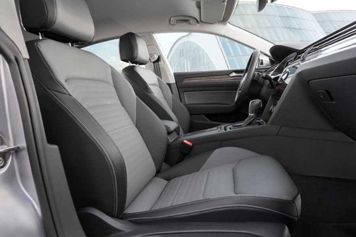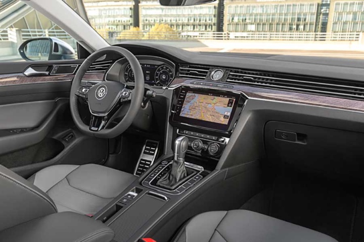 Considering its sleek proportions, the Arteon feels roomy inside. You sit closer to the windscreen than you might expect, the dashboard is shallow and A-pillars noticeably slender, resulting in excellent forward visibility. The door-mounted mirrors are adequate, as is the view via the rear-view mirror through the raked wiper-less rear hatch. The look and feel of the cabin is quite similar to that of the Passat, though that is likely to change during the next phase of the Arteon's product cycle.