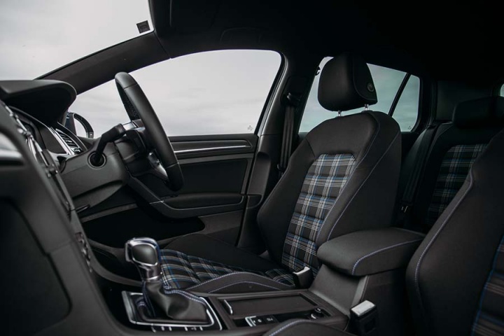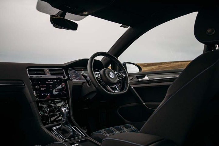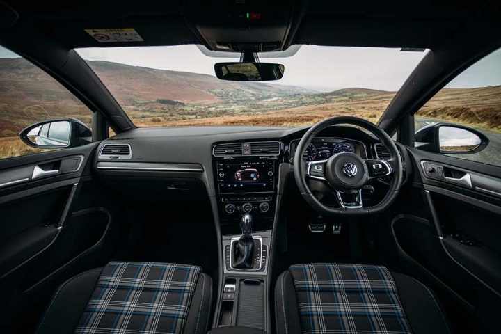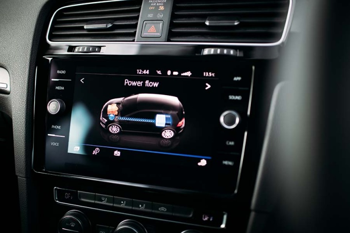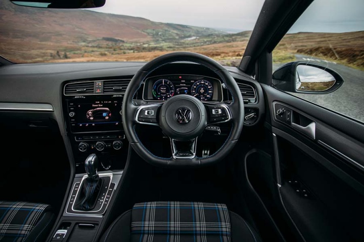 The same is true of the interior, though the GTE's is a match for any of its stablemates' thanks to a generous level of standard equipment and very high quality levels. A flat-bottomed steering wheel sets the sporty tone, which is enhanced by figure-hugging sports seats upholstered in a GTE-specific take on the Volkswagen 'Clark' cloth pattern. Blue ambient lighting and stitching make it clear you're in the GTE, as do the illuminated scuff plates. The eight-inch 'Composition Media' touchscreen system is standard, but satnav is extra, which is a shame, as one of the updated GTE's party tricks is the ability to alter its hybrid system based on GPS positioning and map data. Nonetheless, the lovely Active Info Display (digital rendering of the instruments with five different driver-selectable view modes) is standard, distancing the GTE from run-of-the-mill Golfs.
