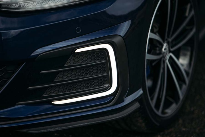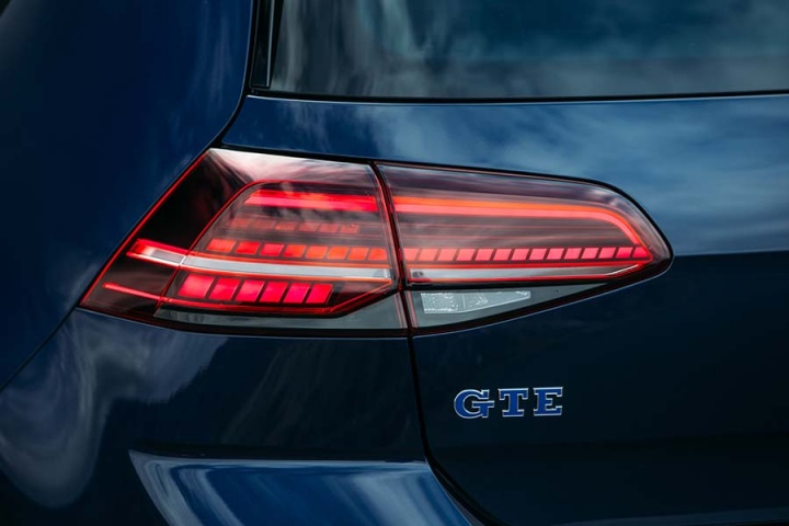 As part of the Golf VII update of last year, the Golf GTE underwent a series of useful updates to keep it fresh without altering its core mechanicals or remit. Full LED headlights and taillamps are the most obvious change. The highly distinctive C-shaped LED daytime running lights up front are retained, while the rear lights get a 'dynamic' LED indicator effect that always catches the eye. The GTE gets unique bumpers front and rear, as before, with tweaks to make it look more like the Golf GTI up front, with a blue highlight to signify electrification and a smattering of GTE badges. The overall sporty effect is in part thanks to standard 18-inch 'Sevilla' alloy wheels. While it isn't quite as hunkered down as the GTI, it is nonetheless considerably sportier looking than any other PHEV hatch on the market we can think of.