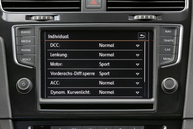 Where to begin? How brilliant the new Golf GTI is on the road is best illustrated by the fact that, for the first 80 or so kilometres of our test route, we didn't realise that our car was fitted with the optional 'DCC' adaptive damping system. It coped with everything from a motorway to a small town with plenty of speed bumps to some of the most exciting corners to be found anywhere on the public road with aplomb. Then we discovered that it was in 'Normal' mode. Select Sport and the steering firms up (arguably unnecessarily), throttle response sharpens up to make heel-and-toe blips easier and the damping and body control ratchet up a degree or three. In this guise the GTI takes on a very different stance, with less body roll and movement under braking and a general feeling of togetherness and tautness - albeit at the expense of a little comfort.