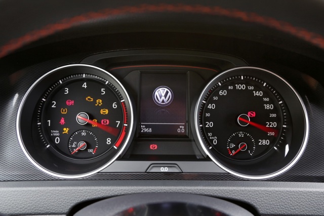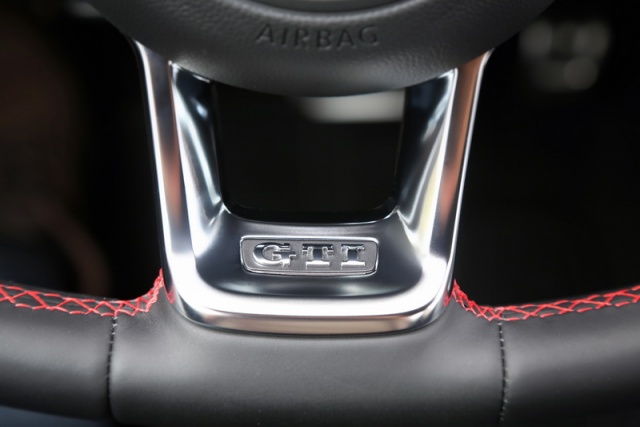 Volkswagen hasn't strayed too far from its tried and tested GTI styling template, though the red stripe that extends into the headlights does make it more obvious, as do the black strakes on either side of the deeper front bumper. It's a shame that the bi-Xenon headlights aren't standard, as they look great too, but even so we love the overall look. Buyers can upgrade the standard 17-inch wheels to 18-inch items in a similar design or to the more extrovert 19-inch option. At the rear, an exhaust either side of the lower bumper, LED lights with a deep red finish and a body-coloured roof spoiler differentiate the GTI from other versions of the Golf.