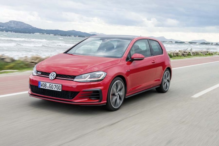 All models come with two-zone climate, LED headlights, city braking with pedestrian detection, 17-inch alloy wheels, a leather trimmed steering wheel and gearshift, sports suspension and sports seats in that distinctive, retro tartan trim (please, don't spec your Golf GTI with leather...). Prices will likely increase slightly when this new model starts to arrive, but not by much, which means you can still by one of the very best cars around, of any class or size, for under €40,000.