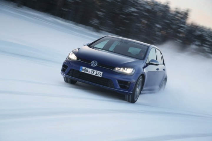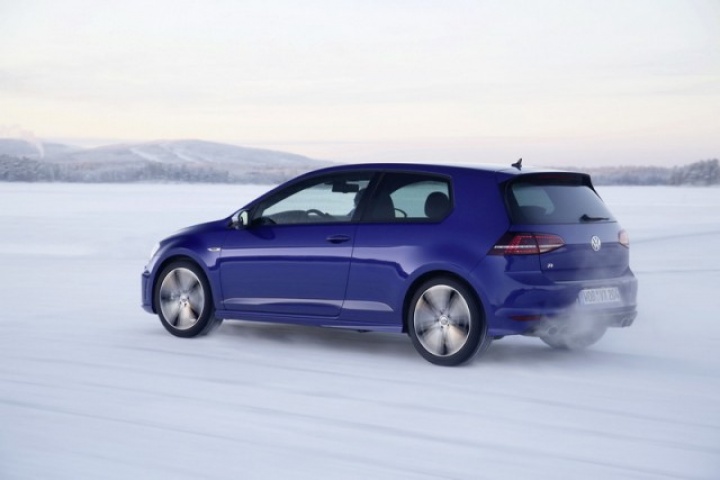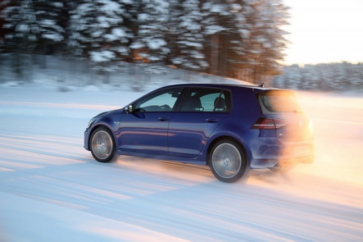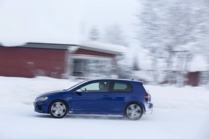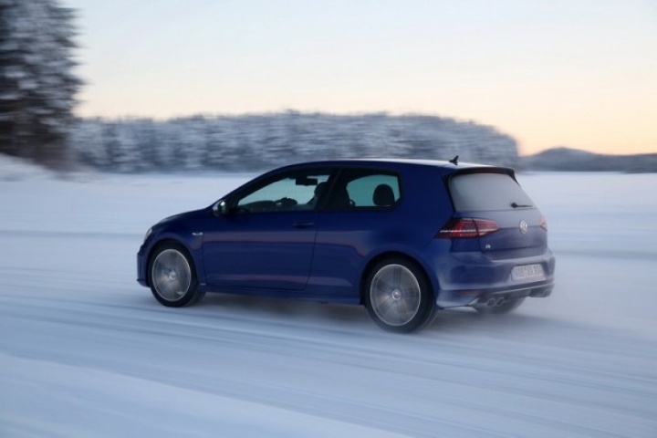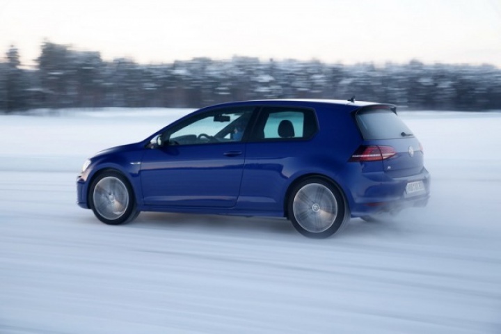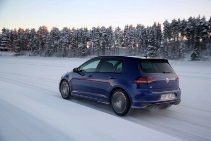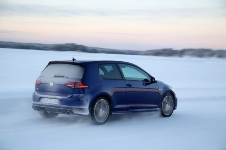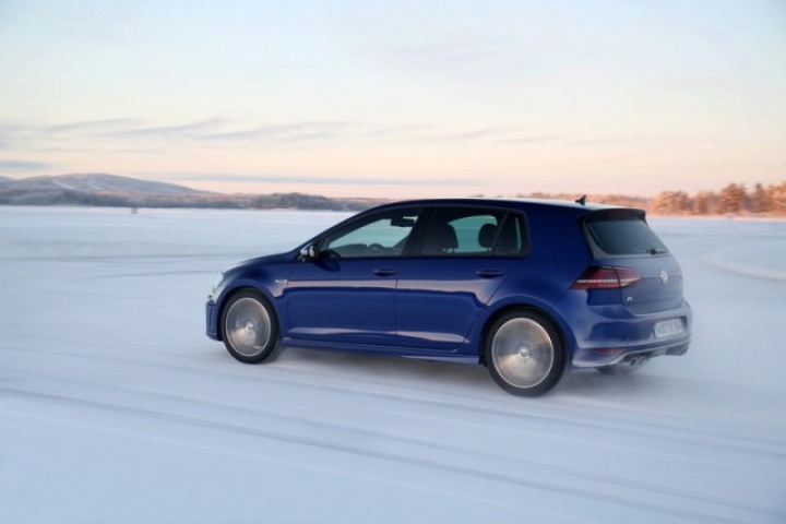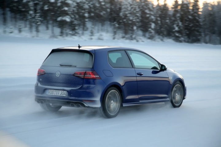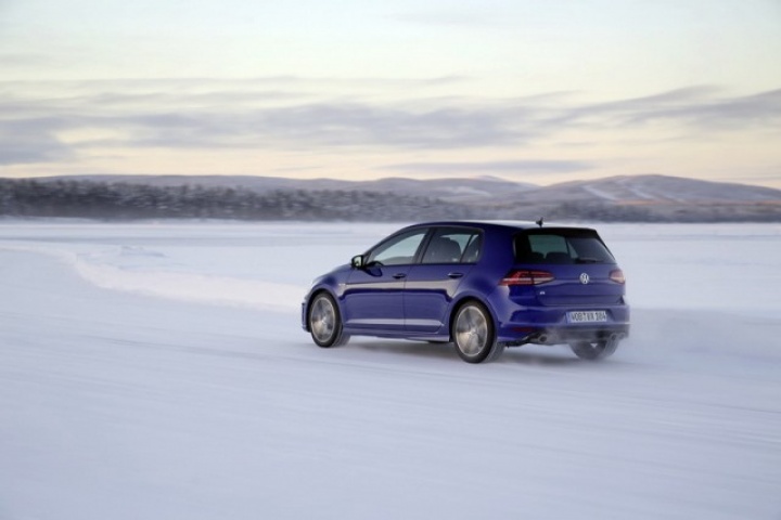 Choose that DSG option and the 0-100km/h time drops from 5.3- to 4.9 seconds, while there are gains too in terms of economy and emissions. Overall the Golf R is 18 per cent more efficient than its predecessor, thanks in part to a weight drop of 46kg, though the four-wheel drive system does see it weigh in at 94kg more than a Performance Pack equipped Golf GTI. The manual Golf R emits 165g/km and returns 39.8mpg on the official combined cycle. Messing around on an ice-covered lake saw figures nowhere near that...