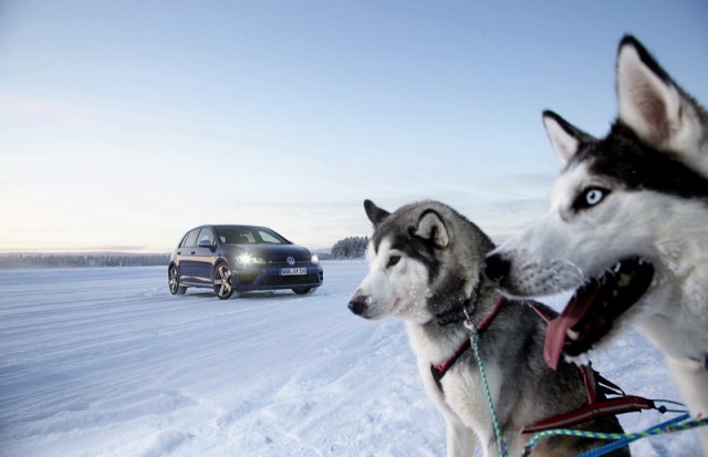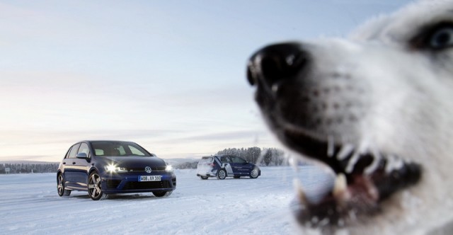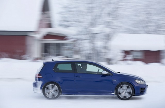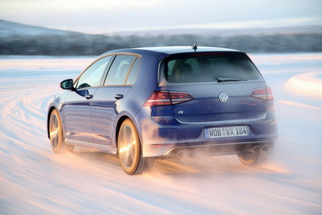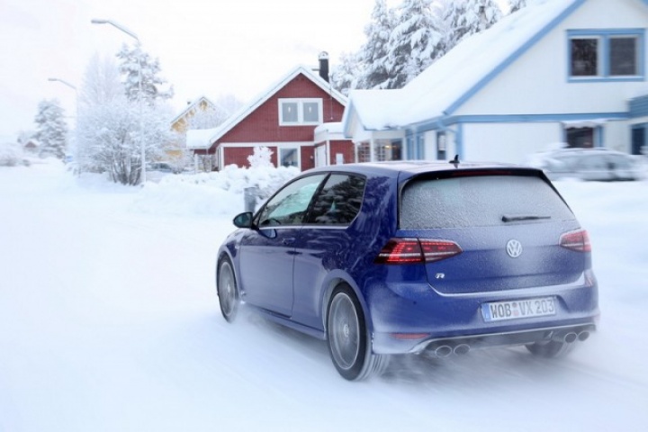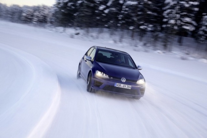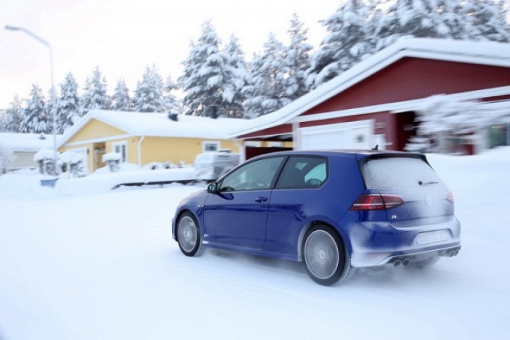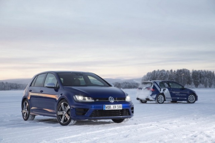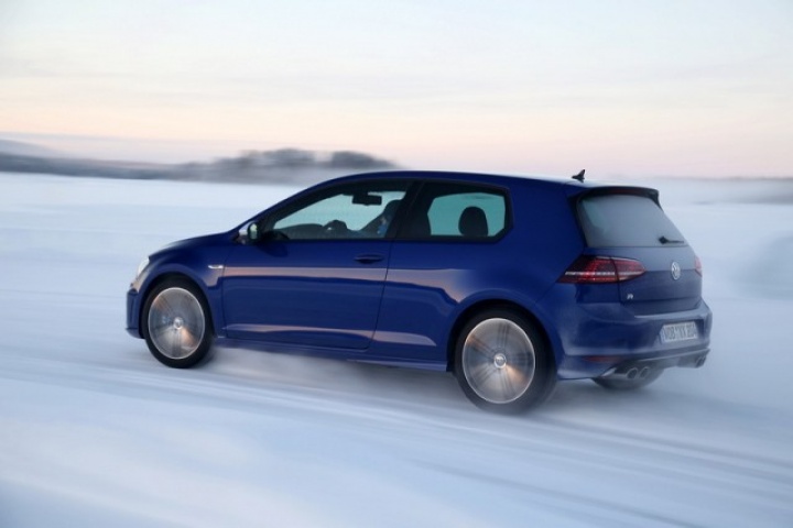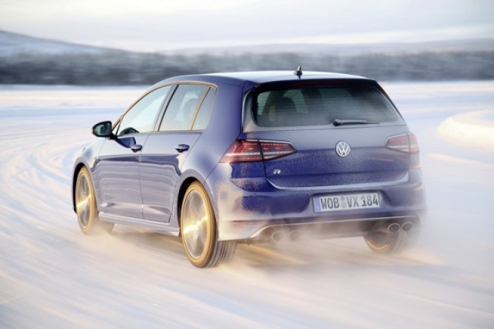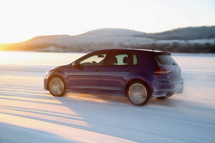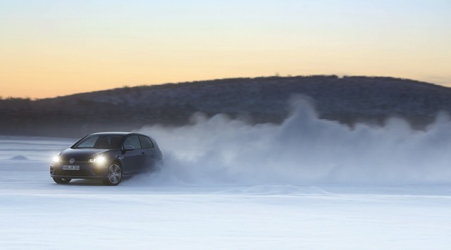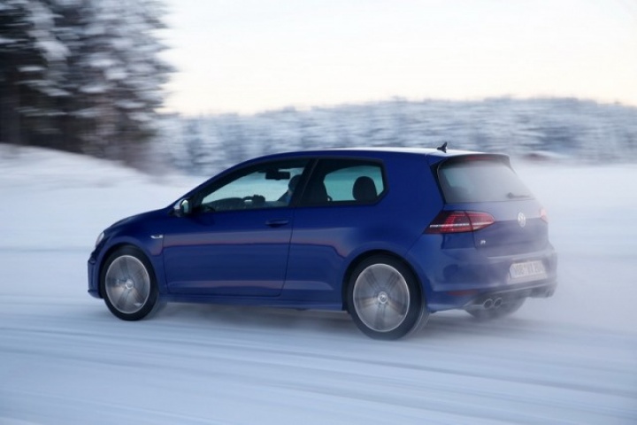 Choose that DSG option and the 0-100km/h time drops from 5.3- to 4.9 seconds, while there are gains too in terms of economy and emissions. Overall the Golf R is 18 per cent more efficient than its predecessor, thanks in part to a weight drop of 46kg, though the four-wheel drive system does see it weigh in at 94kg more than a Performance Pack equipped Golf GTI. The manual Golf R emits 165g/km and returns 39.8mpg on the official combined cycle. Messing around on an ice-covered lake saw figures nowhere near that...