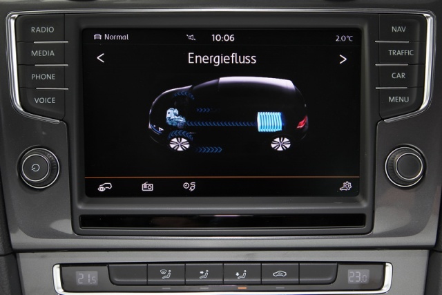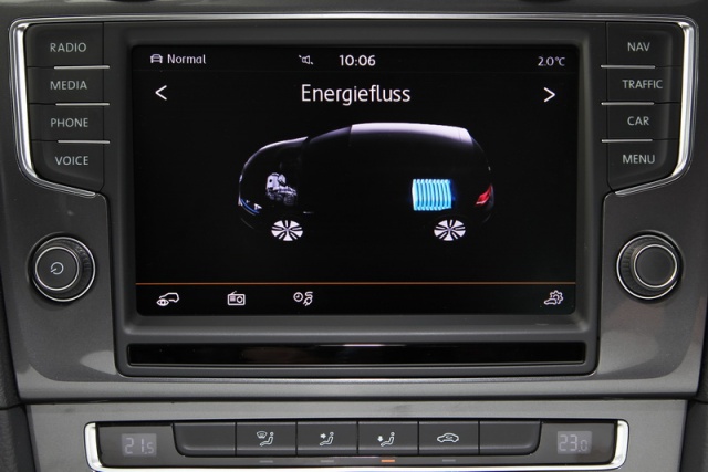 And it is a similar story inside - it's a Golf, just with a few small changes. Chief amongst these is the dash instrumentation, with the rev-gauge replaced by a power meter. There's also an eight-inch infotainment touchscreen that has e-Golf unique features like a range monitor, energy flow indicator, 360-degree range (which shows the potential driving radius on a map based on how much electricity remains) and the ability to pre-programme charging and departure times. This latter feature is especially useful for those who wish to charge their car on the cheaper 'night rate' electricity as they can plug their car in when they come home having pre-set the car to begin charging once the cheaper tariff kicks in. They can also set the car to come up to a desired temperature at the time they will leave for work - handy in the winter.