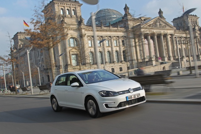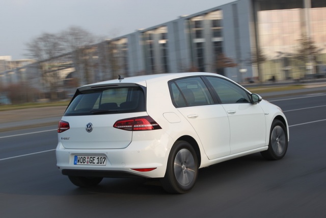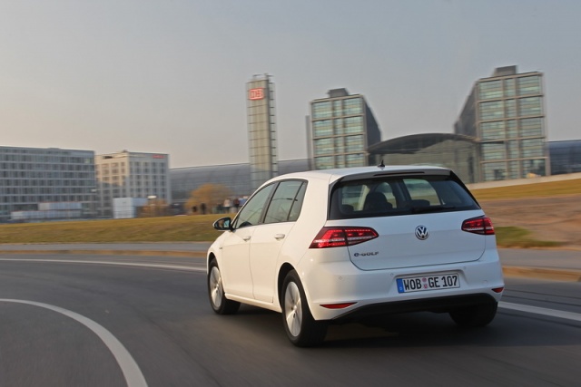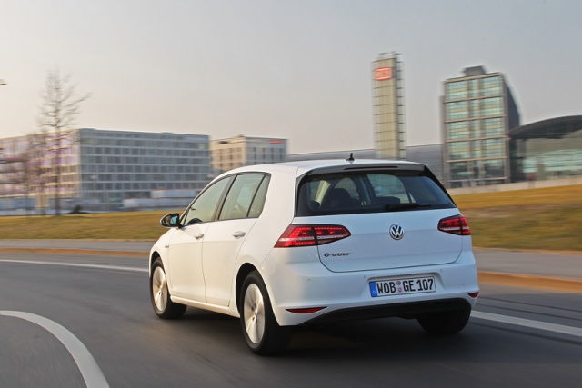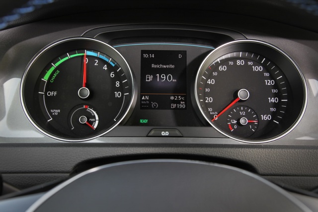 The batteries have been mounted below the floor and between the axles in the space usually occupied by the transmission and exhaust tunnel. This has the effect of lowering the centre of gravity of the car, meaning it remains assured as you push it through bends. It is not sporty exactly, but it does not feel compromised in the way the electric Ford Focus we drove last year did. It just feels like a Golf and considering the praise we have heaped on that car in the past, that is a good thing.