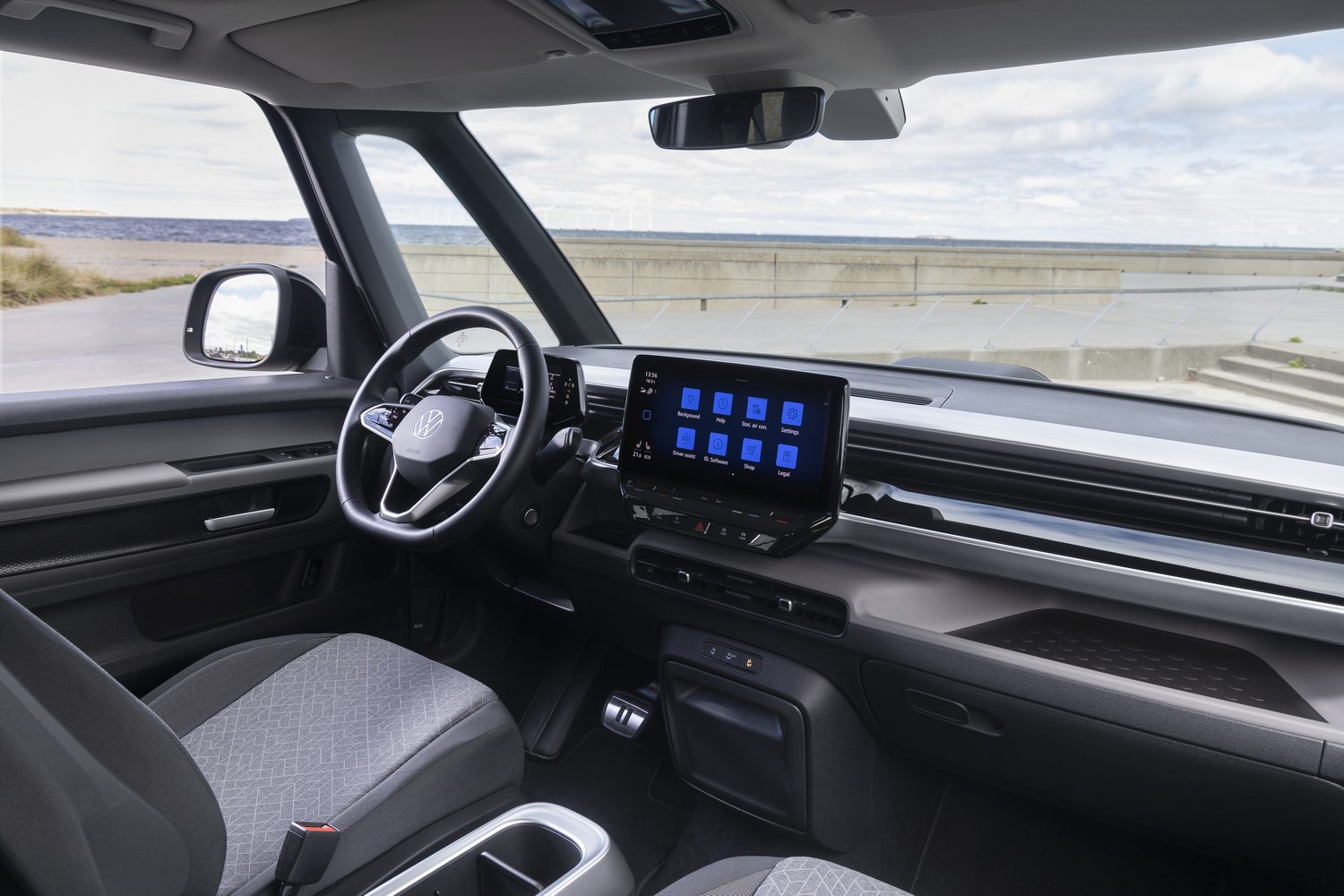 Standard equipment on the ID. Buzz Life includes 19-inch 'Tilburg' alloy wheels, manual sliding doors and gloss black door mirrors and window surrounds. On the inside there are heated front seats, a heated windscreen and steering wheel, 10-inch touchscreen display with wireless smartphone mirroring and a wireless charging pad. Standard driver assistance equipment includes cruise control, lane keep assist and automatic emergency braking with cyclist and pedestrian detection.