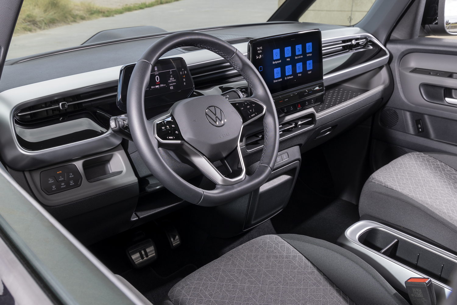 True to its name, the ID. Buzz Tech specification adds more for gadget lovers such as a larger 12-inch touchscreen and an advanced 'Area View' rear camera system, while comfort features include an electrically operated tailgate. The 20-inch 'Solna' alloy wheels, surround lighting, automatic high beam control and Volkswagen's Side Assist feature are also included.