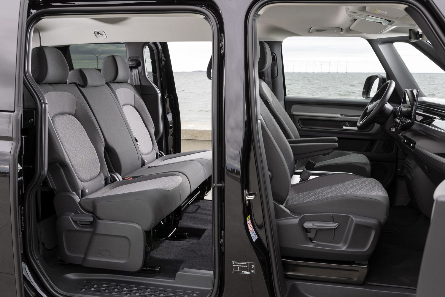 Those rear seats consist of a 60:40 split with the ability to slide fore and aft by 150mm to provide more legroom or create extra luggage space as needs be. The seat occupants can also recline their seatbacks for more comfort over longer journeys. Rather than having charging ports and air vents on the floor at the back of a centre console, Volkswagen integrates the former into the sliding doors while the vents are on the B-post. Volkswagen will be introducing a longer-wheelbase model in the near future with a third row of seats.