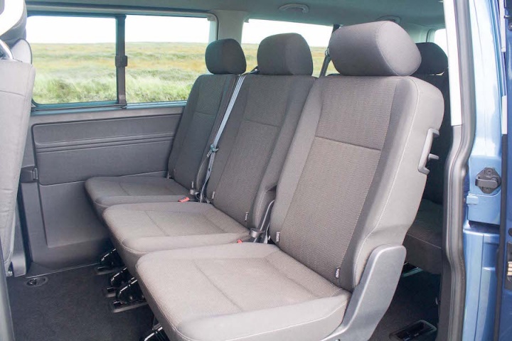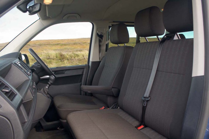 It's pretty comfy too. The Shuttle is basically a less posh version of the pricier Caravelle (both are surely not coincidentally named for famous flying machines with rear-mounted engines, even if the Volkswagen's is mounted at the front...) so cabin quality and seating comfort are more than decent. OK, so you're going to put up with plastics that would be rejected by a Passat or Golf quality control white coat, but here in the Shuttle they feel and look just fine. The 'Composition' media/radio touchscreen system looks and feels bang up to date (even though it's now a generation behind compared to what you get in, say, a new Tiguan) and there is an almost endless procession of cubby holes and storage spaces (even if you need to be built like an orangutan to reach stuff in the bottom of the front door pockets). We really like the simple cupholders, countersunk into the top of the dashboard up by the windscreen pillars, which mean you won't end up with a drinks bottle getting in the way of the gearshift.