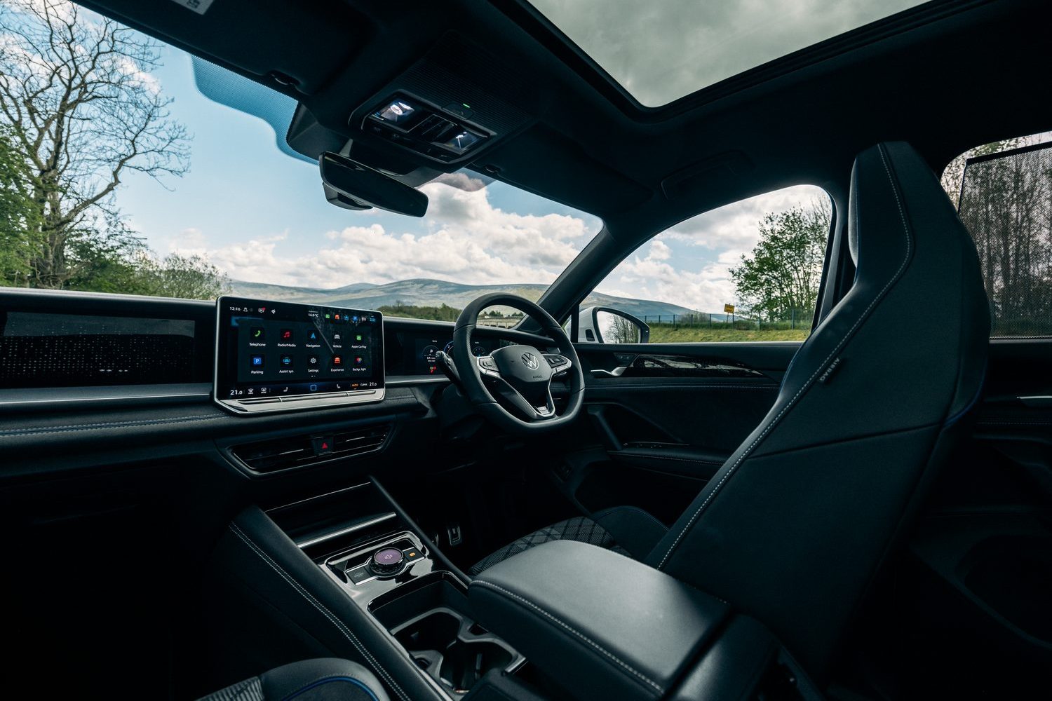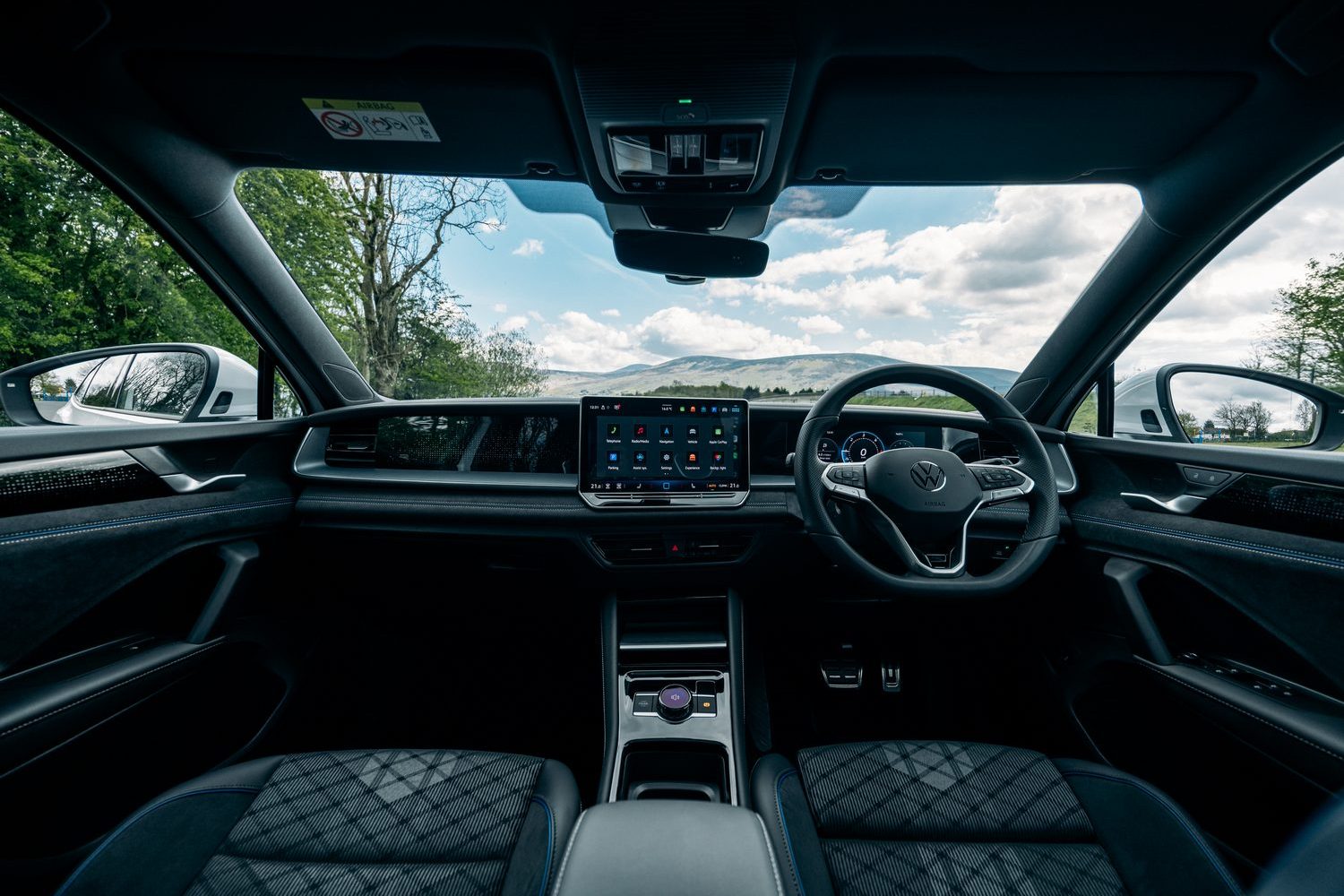 The R-Line Edition 75 (the one we're testing, €71,005 as a diesel, or €60,200 as a PHEV) adds metallic paint, a panoramic glass sunroof and a head-up display.
