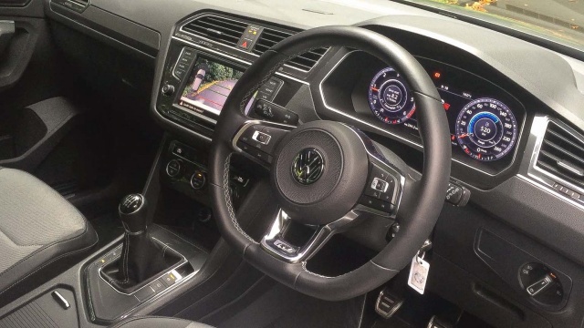 It's the Highline version of the Volkswagen Tiguan, and this one has the 2.0-litre TDI 150hp engine. It has been fitted with the chunky and muscular R-Line options pack, which includes bigger, deeper bumpers, sills and a rear spoiler. It also has gorgeous 19-inch 'Sebring' alloy wheels and the standard spec includes LED headlights, three-zone climate control, the all-digital 'Active Info Display' instruments and active cruise control.