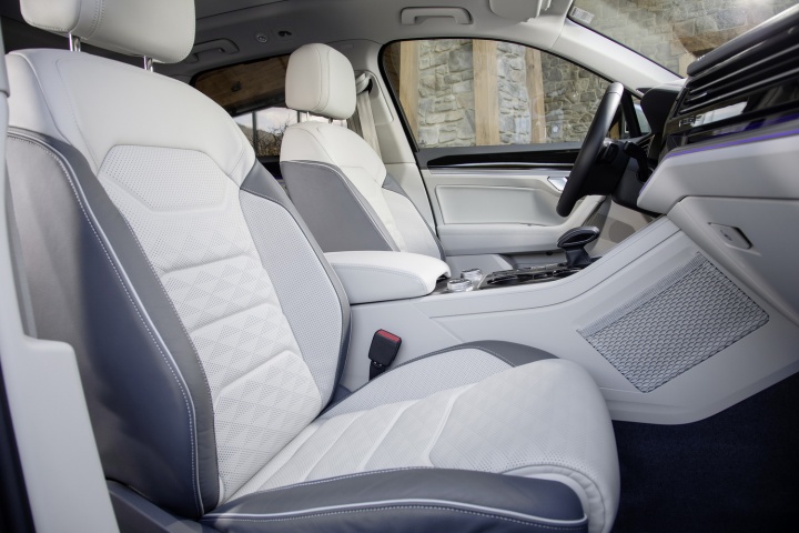 Like the smaller Volkswagen T-Roc, the headlights meld into the bold grille design. The flanks do enough to mask some of the car's bulk and, by sticking to a five-seat arrangement, the rear end is more rounded than it otherwise might have been. Despite growing a little in both length and width, the Touareg did lose 106 kilograms in comparison to its predecessor.