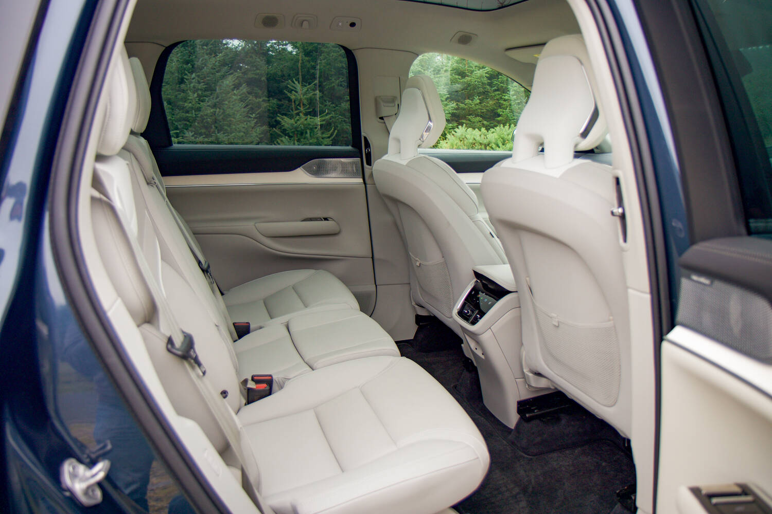 One thing you will notice in the back of the EX90, in the middle row, is that the outer two seats are pressed quite firmly up against the doors. This isn't great for elbow room, but what it does do is liberate enough space so that there's a real, proper seat in the middle.