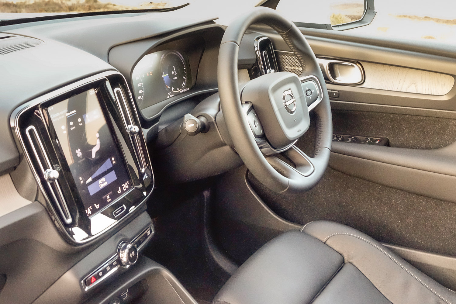 That all translates into a spacious interior front and rear, with an acceptably sized boot, too. Speaking of the cabin, the XC40's is just as special as any other in the Volvo range. Obviously, it's at its best in Inscription Pro spec with luscious leather upholstery and tactile 'Driftwood Décor' inlays. There's a quick-responding portrait-oriented touchscreen in the middle of the dash and effective digitally rendered instrumentation in front of the driver. There's nothing massively showy about it all (ok, maybe the crystal shifter is a little OTT), but it exudes quiet cool and is difficult not to like.