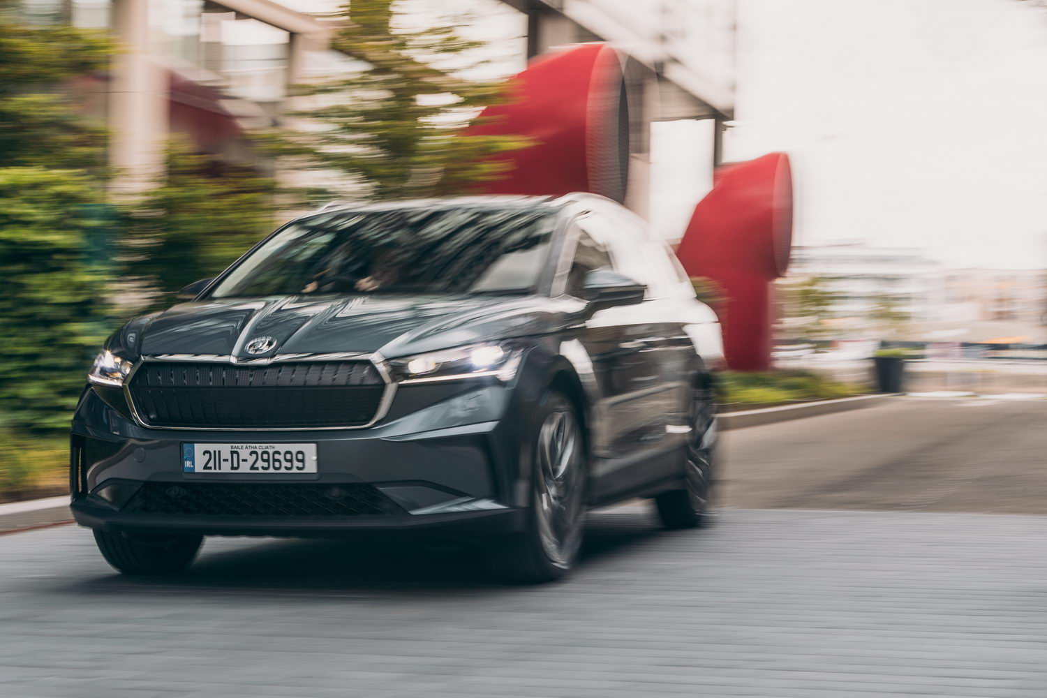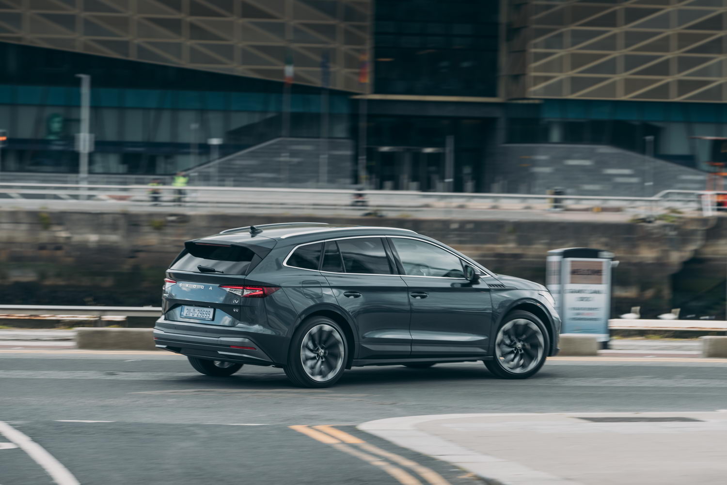 So, our journey would start in Dublin, where I collected the Enyaq from a location just off the Naas Road. We started with a 97 per cent charged battery, indicating a potential range of 440km. Now, that's a lot less than Skoda's quoted 535km range for this, the top-spec Enyaq 80, with its massive 77kWh (useable) battery. However, there are extenuating circumstances - our Enyaq came with options such as a hefty glass panoramic roof and large 21-inch alloy wheels, both of which do range no favours. Equally, only a precious few EVs ever actually display their official full-charge range on a full charge, and those that do are probably telling porkies...