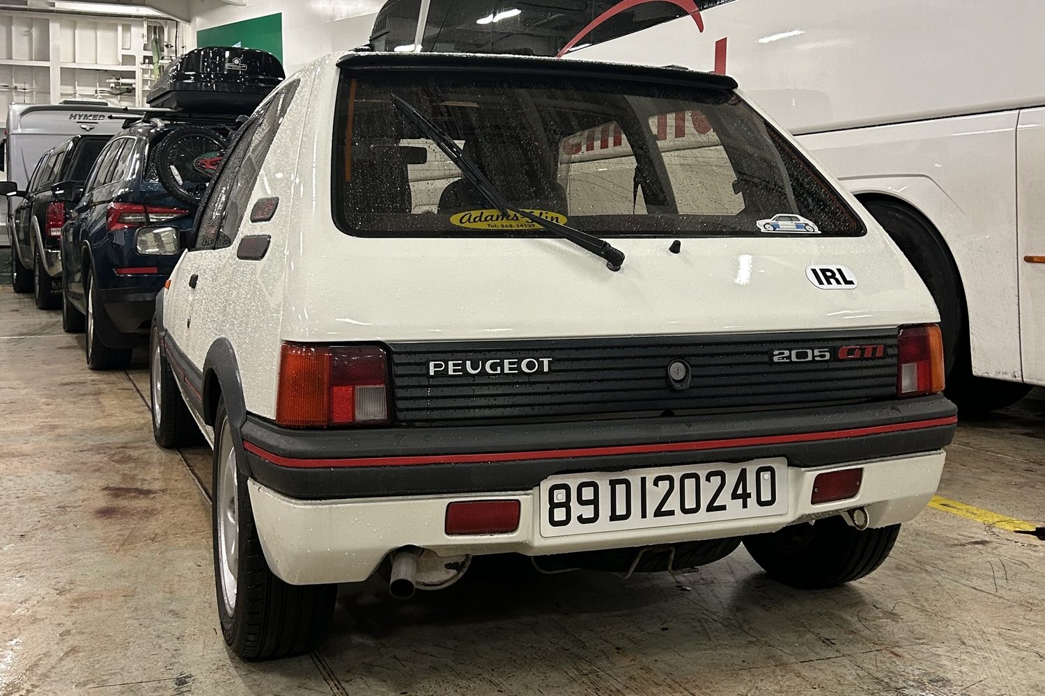 Fast forward a few chaotic weeks of planning and logistics and we're sitting in the queue to board a ferry at Dublin Port. Adams of Glin, a Peugeot main dealer in Co. Limerick, generously provided its own 205 GTi for the journey, a pristine 1989 model in white with about 140,000 miles on the clock before we got our hands on it.