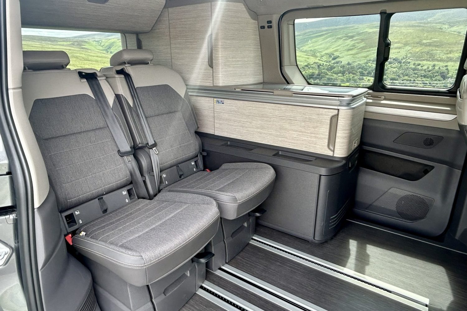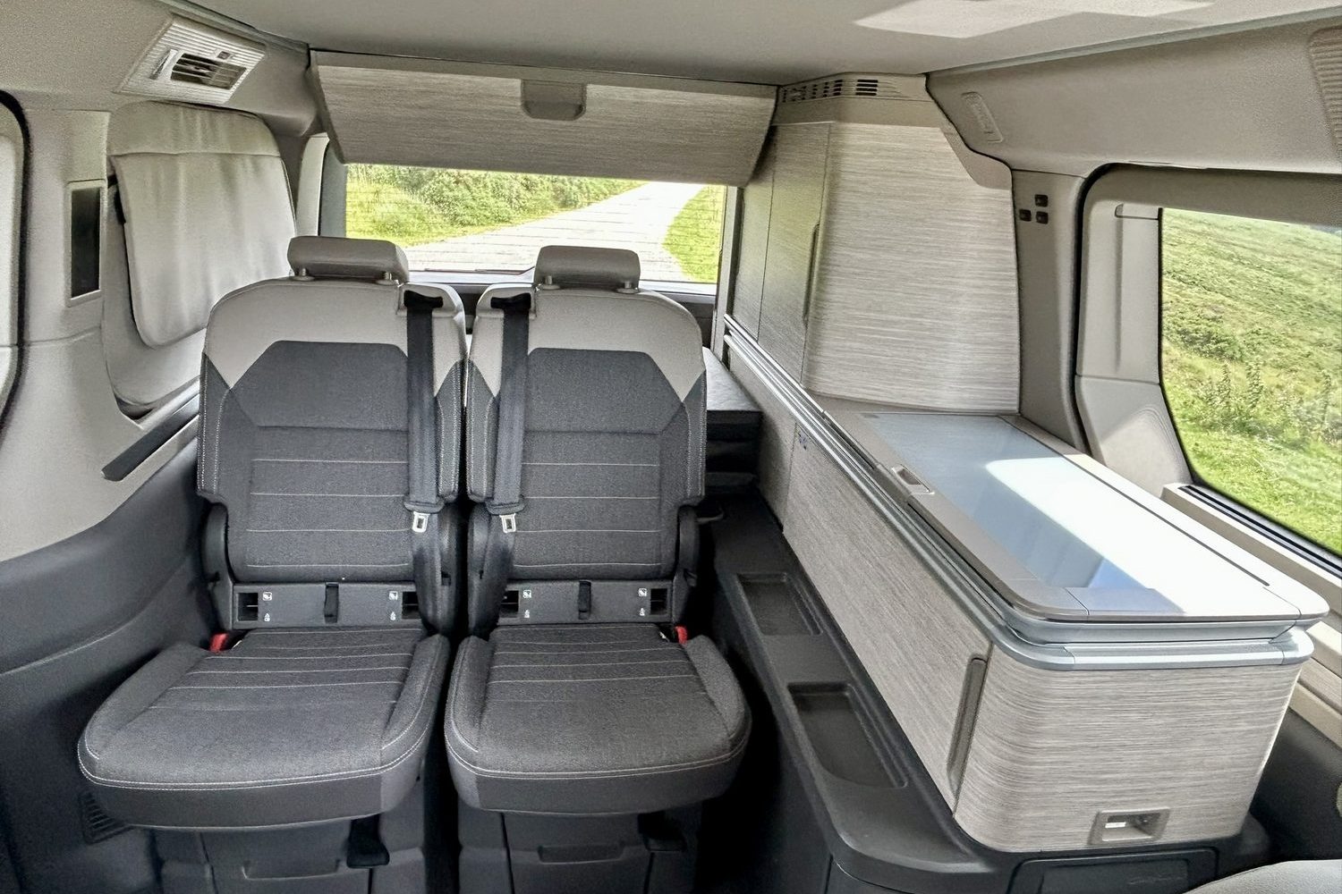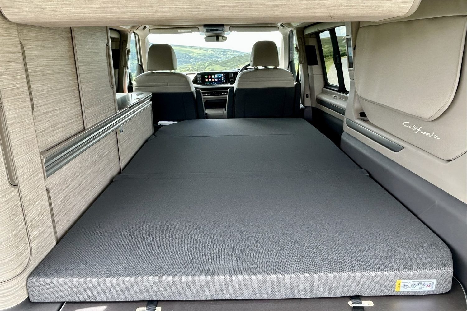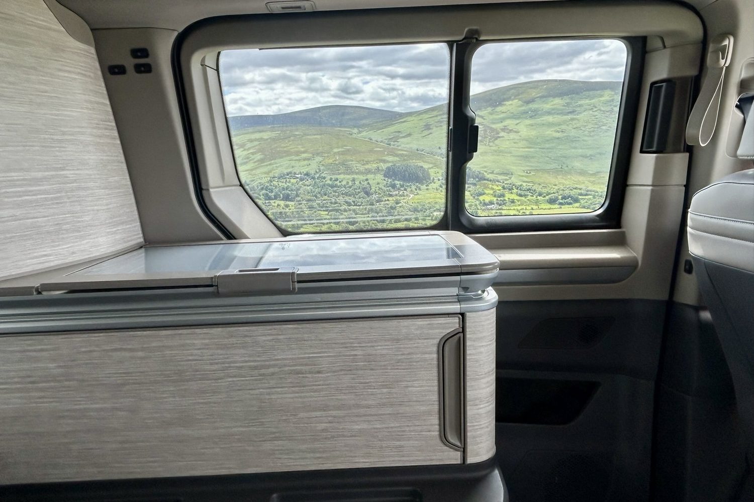Back in the California, you can immediately see one advantage of the switch from the old Transporter-van-based model to this version, based on the car-like Multivan. Thanks to a longer wheelbase, there's a bit more stand-up-and-move-around space when the bed is folded out and the front seats have been swivelled around into their lounge position, so it's much easier to get set for bed once again. The little touch-sensitive LED lights built into the edge of the roof are also a godsend; so easy to flick on or off when necessary.