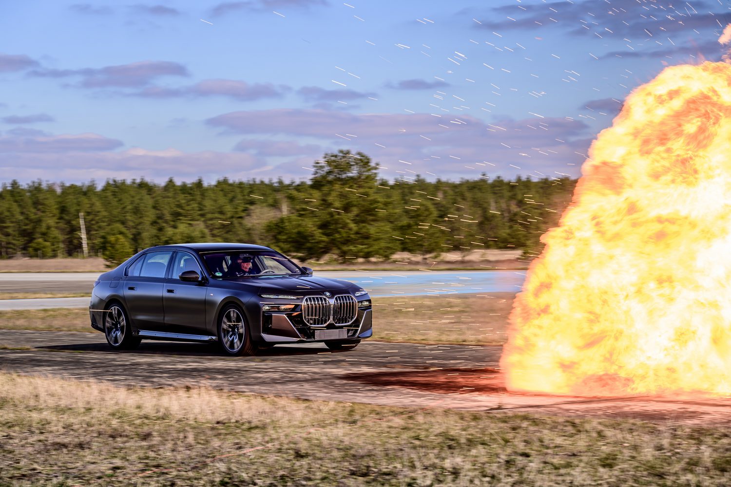 BMW runs driver training of various kinds at facilities around the world, mostly on racetracks, but this venue is used for the very specific needs of training to drive armoured vehicles, as its remote location allows for night driving and the use of loud pyrotechnics.