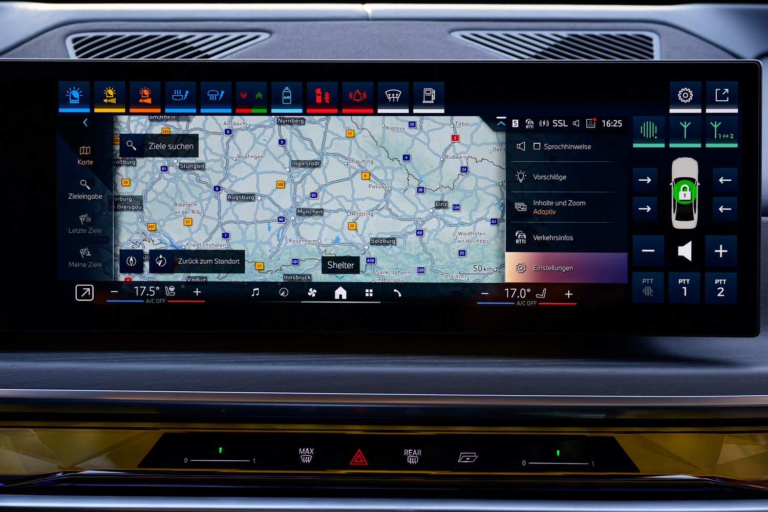 This menu also allows control of the fresh air system, the external communications (so you don't have to crack open a window to speak to someone outside), special lighting, fire extinguishers and more.