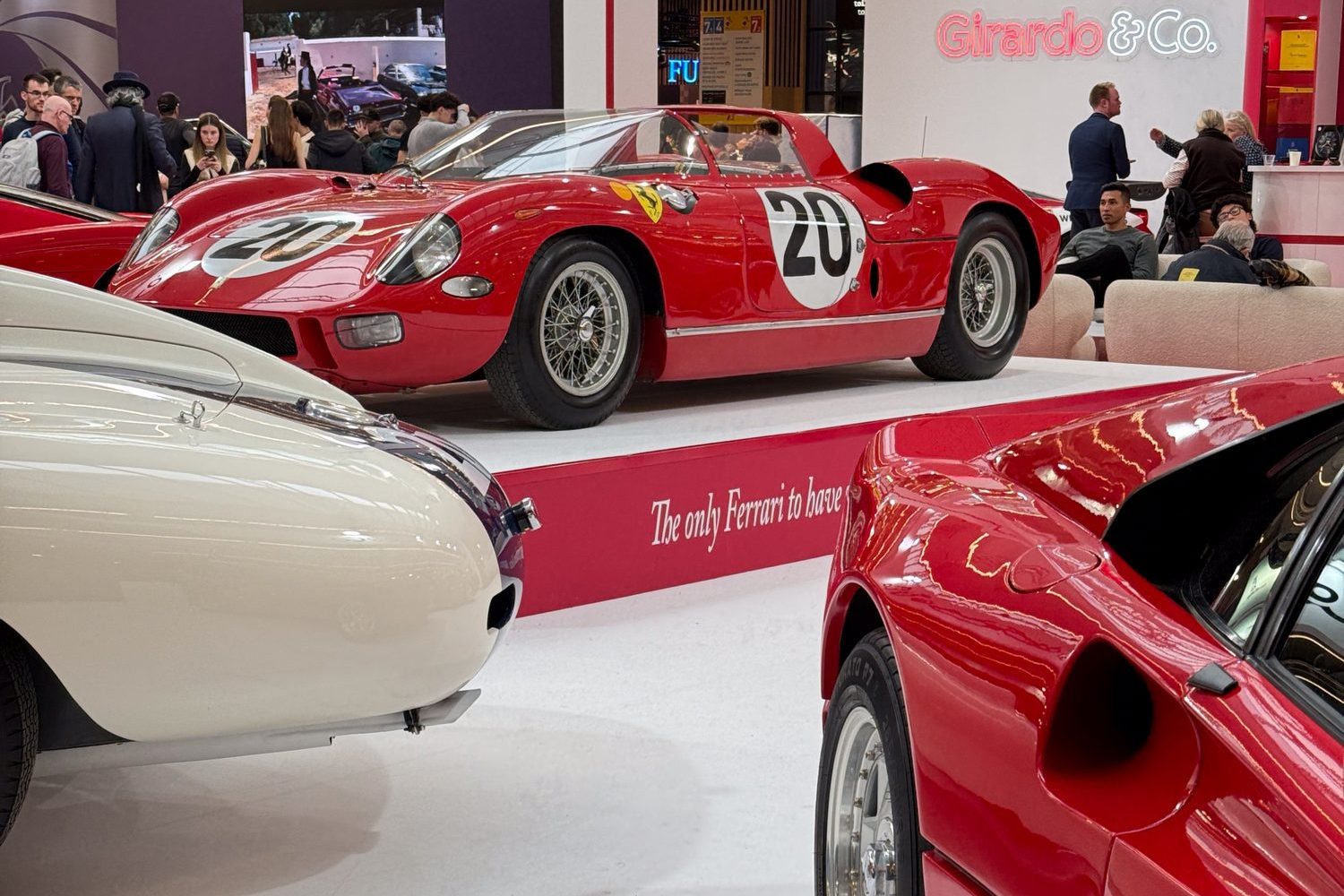 All the usual players were there, each trying to outdo one another in how rare and how expensive a show stand it could present. One of the smaller outfits, Girardo & Co, had a sublime collection of the most important Ferraris for any would-be collector who's just come into a tsunami-like financial windfall. Besides the obligatory F40, F50 and 288 GTO, there was a 1963 275 P, the only Ferrari to have won Le Mans twice.