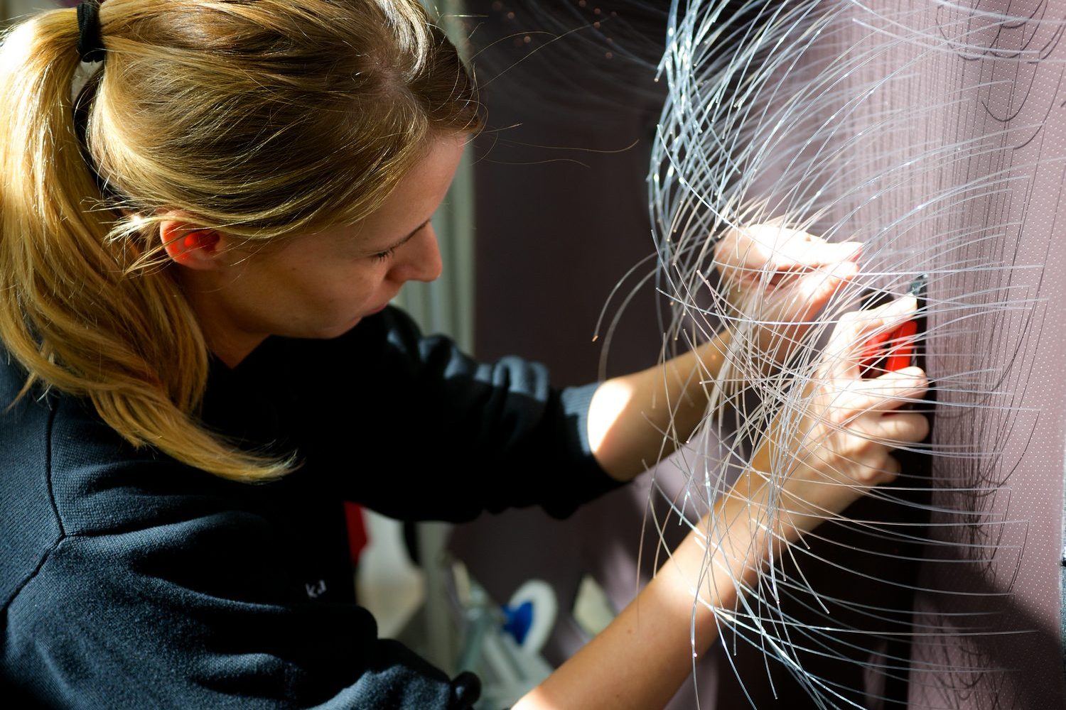 The Bespoke room itself is another level again. This is a small, almost self-contained operation, with just a handful of people overseeing the creation of one-off pieces. Here, small-scale machines are used to produce items that will never be repeated, such as intricate headliners featuring millions of stitches arranged into bespoke designs. This is essentially commissioned artwork mixed with automotive engineering.