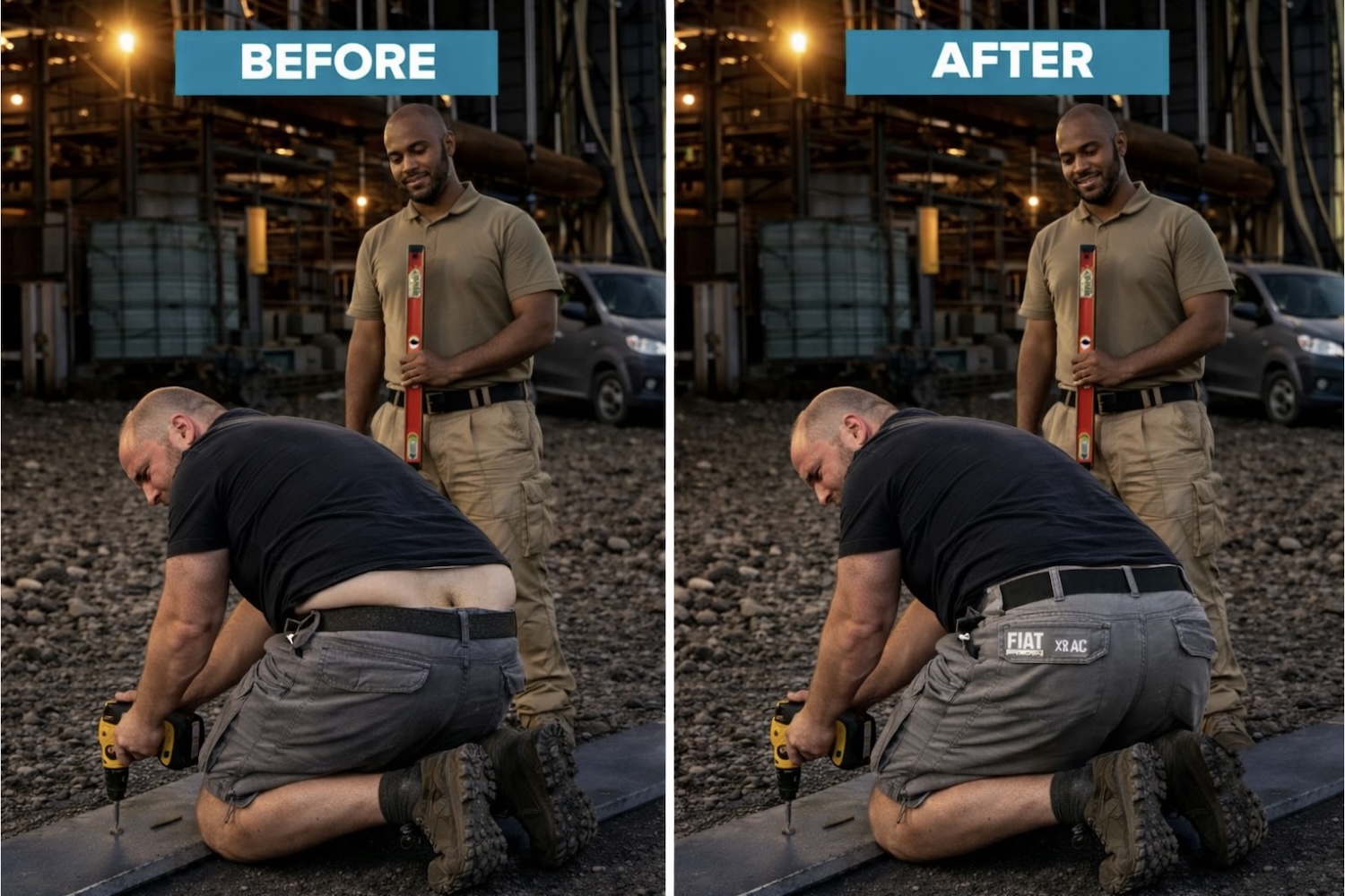 Thankfully, Fiat Professional now has the answer (no, it hasn't…) in the form of a special clothing range designed to keep pants in place, and bums out of sight. Designed by up-and-coming designer Alessandro Cheekwood (we like that…), the new 'No-Show Range' features various coloured shorts and trousers, with a high-rise fit, an additional extended waistband at the back, as well as reinforced stretch panels to ensure full coverage while lifting and bending. Designer Cheekwood has also created a heavy-duty and breathable, crack-control fabric that offers a practical solution tailored to modern tradespeople.